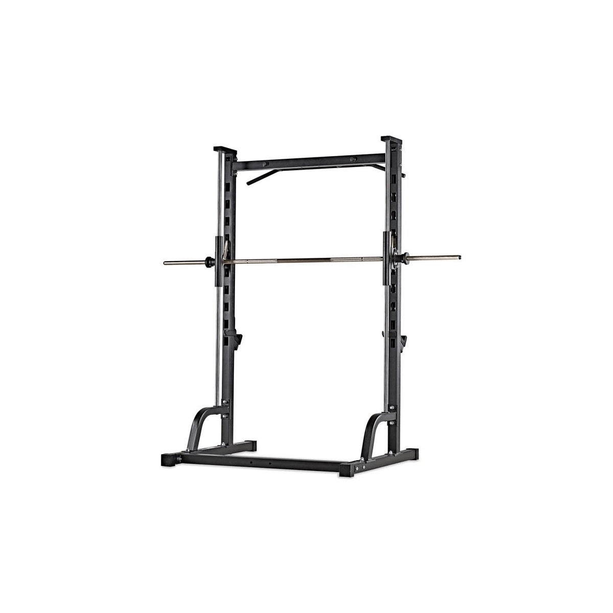 - Multipresse und Free-Rack in Einem,ermöglicht das sichere Training mit der geführten Hantel der Multipresse, sowie das freie Langhantel-Training Stabile und platzsparende Bauweise mit nur 111 cm Bautiefe