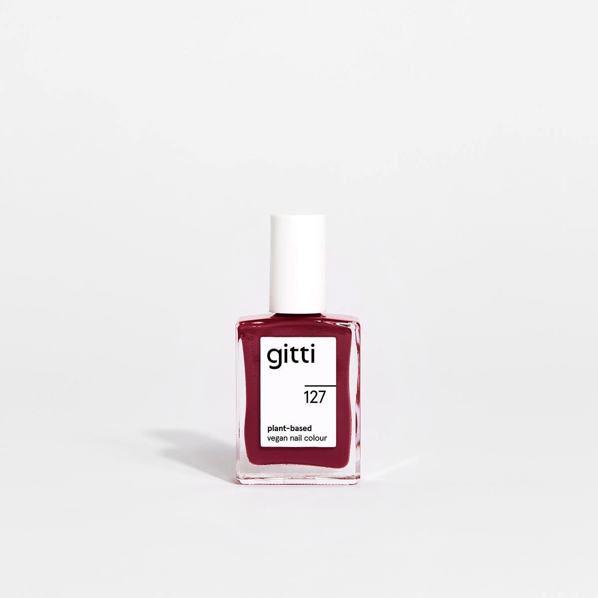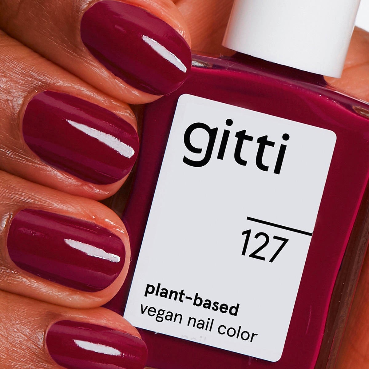 Pflaumenrot ist eine tiefrote, beerige Nagelfarbe für Intensität und Kraft. Die von Jennifer Baum-Minkus in Berlin gegründete Conscious Beauty-Brand verfolgt eine klare Mission: die Revolution der Beauty-Industrie mit Produkten, die besser für Dich und unseren Planeten sind. gitti bietet Produktinnovationen mit natürlichen, wirksamen Texturen und nachhaltig designten Verpackungslösungen. Die Nagelfarben von gitti sind bis zu 82% pflanzenbasiert, bis zu 7 Tage langanhaltend, 100% vegan und PETA-zertifiziert. Step 1: Rinse-free Cleanser Für das optimale Ergebnis, sprühe eine großzügige Menge des Sprays auf die trockene Haut und verteile es gleichmäßig, bis es vollständig eingezogen ist. Effektiv gereinigte, von Schmutz und Talg befreite Hände, Nägel und Nagelhaut sind die perfekte Basis für die Maniküre. Step 2: Top&Base Coat Für das optimale Ergebnis, starte mit einer dünnen Schicht Base Coat. Dieser schafft eine glatte Oberfläche und schützt deine Nägel vor möglichen Verfärbungen bei intensiven und dunklen Farbtönen. Step 3: Farbe Trage deine Farbe so dünn wie möglich auf. Eine Schicht ist bei gitti Nagelfarben bereits ausreichend. Möchtest du die Farben allerdings deckender, trage eine zweite, dünne Schicht auf. Lass die Farbschicht gut trocknen. Dank der dünnen Schichten geht das Trocknen schneller, als du es vom klassischen Nagellack gewohnt bist. Step 4: Top&Base Coat Versiegele die getrocknete Farbschicht mit einer dünnen Schicht des Top&Base Coat für verlängerte Haltbarkeit.