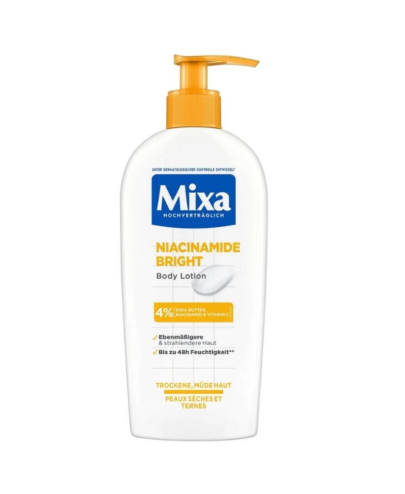 Mixa Niacinamide Bright Body Lotion. Für ebenmässigere und strahlendere Haut.