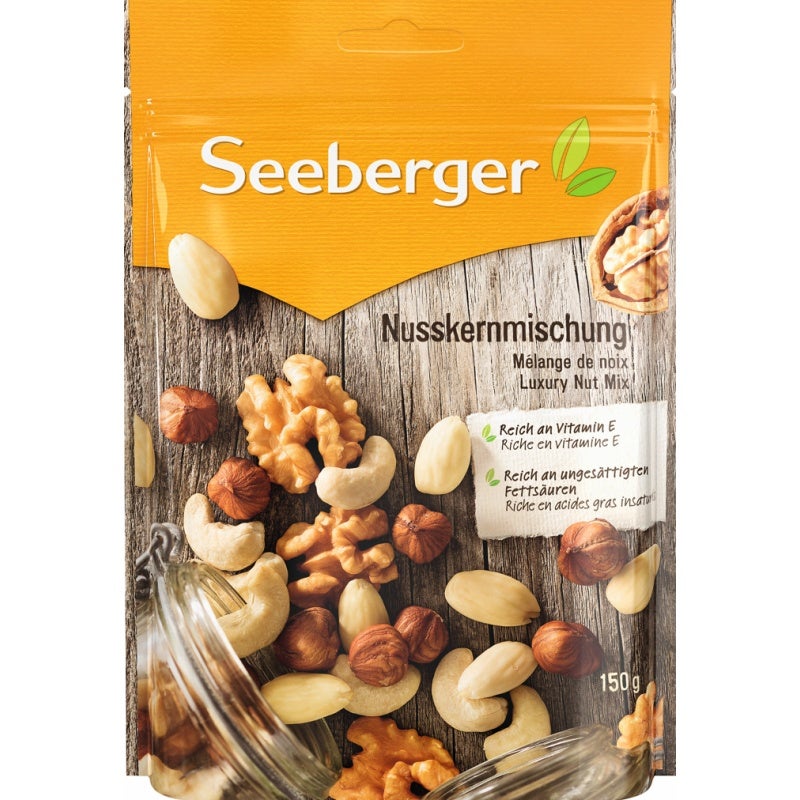 Nusskernmischung (in veränderlichen Gewichtsanteilen: Haselnusskerne, Mandeln blanchiert, Cashewkerne), Walnusskerne (10%).