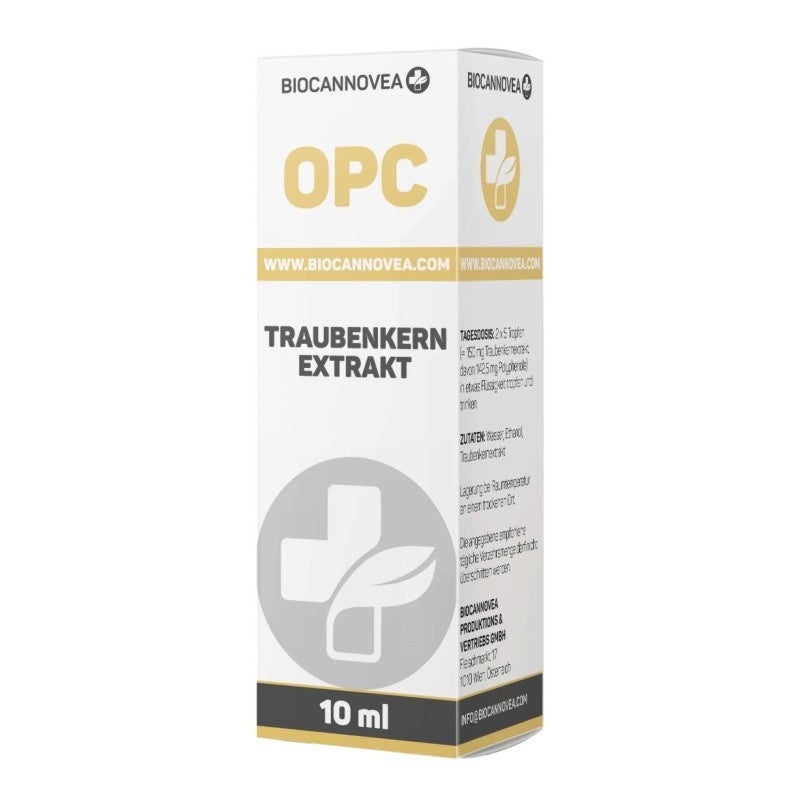 BIOCANNOVEA OPC Traubenkernextrakt enthält hochwertigen Extrakt aus Traubenkernen mit natürlichen OPC (Oligomere Proanthocyanidine/Procyanidine). Die Tropfenform ermöglicht eine einfache und flexible Einnahme im Alltag. Das Produkt wird aus hochwertigen Rohstoffen hergestellt und in Österreich produziert und abgefüllt – für geprüfte Qualität und Reinheit.
