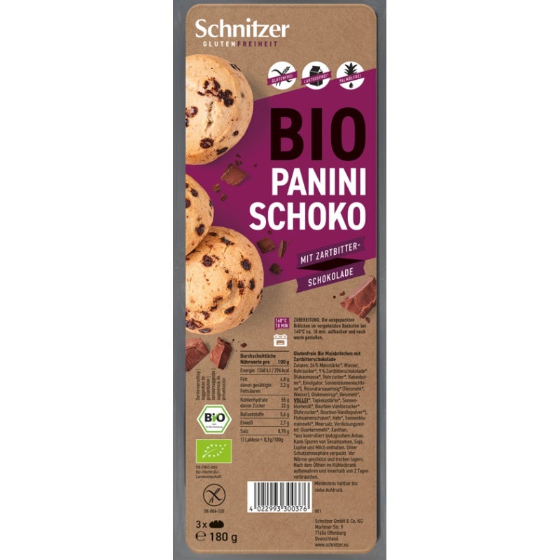 Maisstärke* 24%, Wasser, Rohrzucker*, Zartbitterschokolade (Kakaomasse*, Rohrzucker*, Kakaobutter*, Emulgator: Lecithine*) 9%, Reisnatursauerteig* (Reismehl*, Wasser), Glukosesirup*, Reismehl*, Vollei*, Tapiokastärke*, Sonnenblumenöl*, Bourbon-Vanillezucker* (Rohrzucker*, Bourbon-Vanillepulver*), Flohsamenschalen*, Hefe*, Sonnenblumenmehl*, Meersalz, Verdickungsmittel: Guarkernmehl*, Xanthan