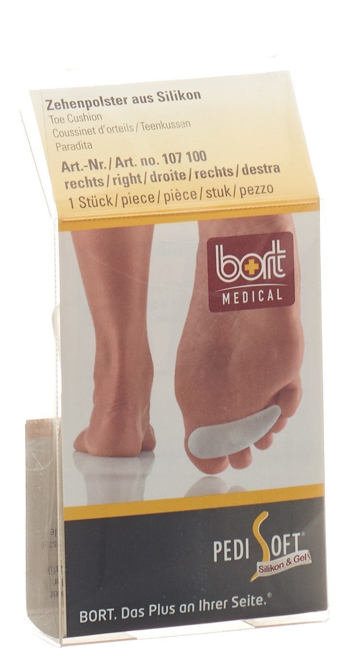 Bort PEDISOFT Zehenpolster ist ein Zehenpolster aus weichem und glatten Silikon & Gel welches die die Zehen entlastet und vor zusätzlichem Druck von aussen ideal schützt.