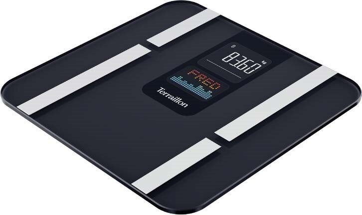 CONNECTED BODY FAT ANALYSER - UNSICHTBARE ELEKTRODEN - GROSSE GLASPLATTFORM 28x28x2,7cm - 8 BENUTZERSPEICHER - 180KG