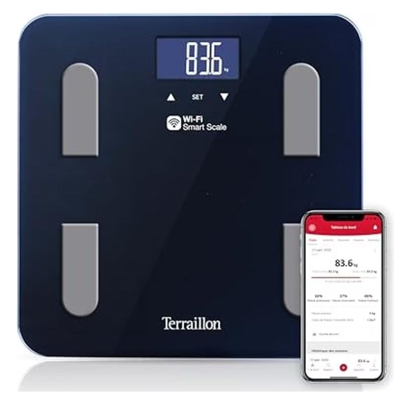 Die Terraillon Personenwaage Fit Coach ist eine moderne vernetzte Personenwaage mit Impedanzmessung, die mehr als nur Gewicht liefert. Sie bietet eine umfassende Analyse von Körpergewicht, Körperfett, Muskelmasse, Wasseranteil, Knochenmasse und BMI und unterstützt Sie bei der Überwachung Ihrer Gesundheitsziele zu Hause. Die Waage verfügt über eine Glas‑Wiegefläche (30x30cm) und eine maximale Tragkraft von 180kg mit Skalierung in 100g‑Schritten, sodass sie präzise Messergebnisse liefert. Bis zu 8 Benutzerprofile werden erkannt, und die automatische Benutzererkennung ordnet die Messwerte den jeweiligen Personen zu.