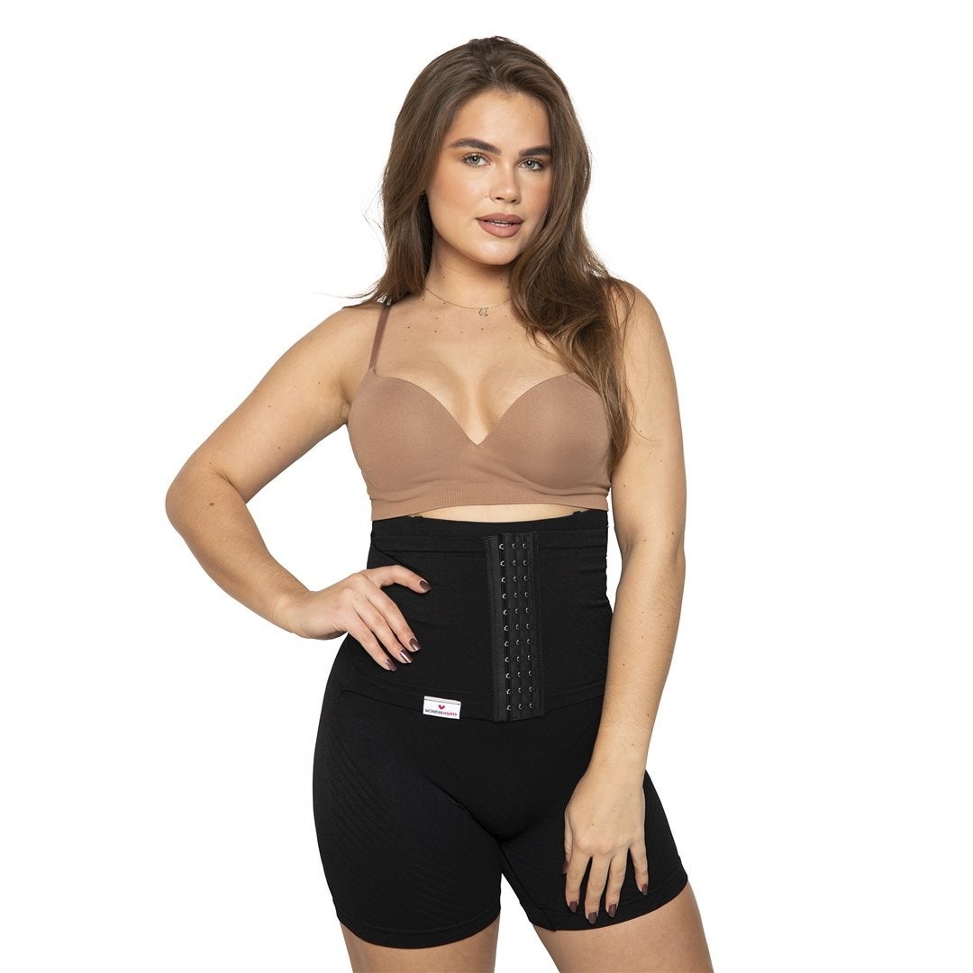 Mit der Wondermom Postpartum Belly Binder Shorts helfen Sie Ihrem Bauch, in seine ursprüngliche Form zurückzukehren. Es handelt sich um die traditionelle Postpartum-Bauchbinde in einem neuen Look: Sie ist so konzipiert, dass sie leicht und ohne Hilfe angezogen werden kann.