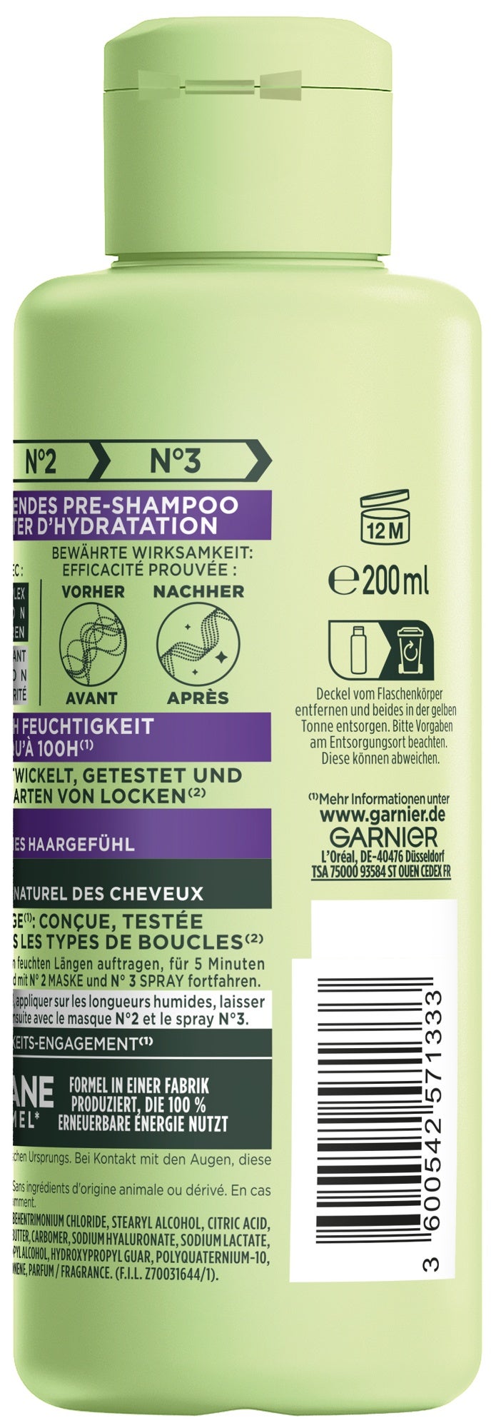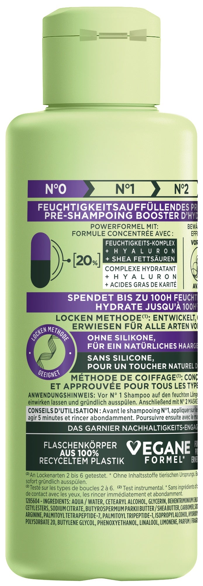 Das Fructis Locken Methode Feuchtigkeitsauffüllendes Pre-Shampoo wurde speziell für alle Arten von Locken entwickelt. Die bewährte Formel spendet bis zu 100 Stunden Feuchtigkeit, revitalisiert lockiges Haar und verleiht eine atemberaubende Ausstrahlung. Dank einzigartigem Feuchtigkeitskomplex aus Hyaluron und Shea-Fettsäuren wird das Haar intensiv gepflegt und mit wertvoller Feuchtigkeit versorgt. Das Pre-Shampoo wirkt gezielt gegen trockene und spröde Locken. Für ein natürliches Haargefühl verzichtet die vegane Formel auf Silikone. Die getestete Powerformel sorgt für einen gepflegten, strahlenden Look und bringt gelocktes Haar wieder zum Leben – natürlich, effektiv und nachhaltig.