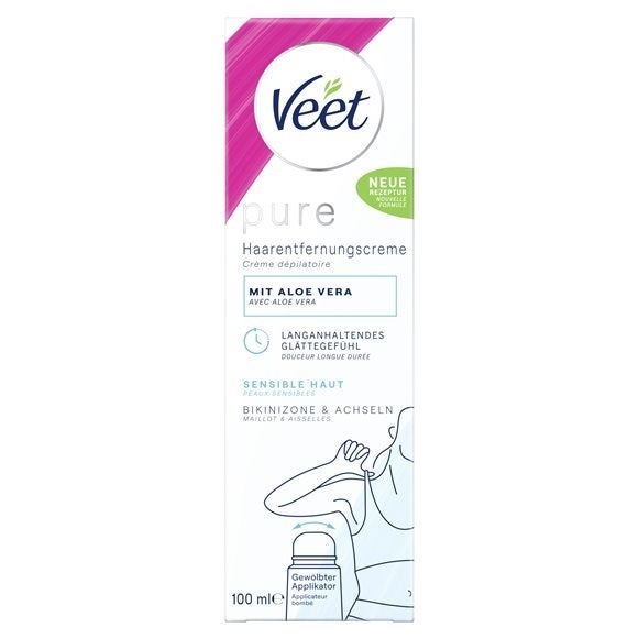Die Veet PURE Enthaarungscreme von Veet wurde speziell für die schonende Haarentfernung bei sensibler Haut entwickelt. Sie eignet sich ideal für Bikinizone und Achseln, kann aber auch an Beinen und Armen angewendet werden. Die verfeinerte PURE-Rezeptur enthält ein Minimum an Inhaltsstoffen und sorgt für ein seidig glattes Hautgefühl. Dank des gewölbten Applikators lässt sich die Creme besonders einfach und präzise auftragen – vor allem an empfindlichen und schwer erreichbaren Stellen wie Achseln und Bikinizone. Die Formel ist dermatologisch getestet, ohne Ammoniakgeruch und überzeugt mit einem angenehmen Duft. Bereits nach wenigen Minuten werden Haare effektiv entfernt, ohne die Haut unnötig zu belasten.