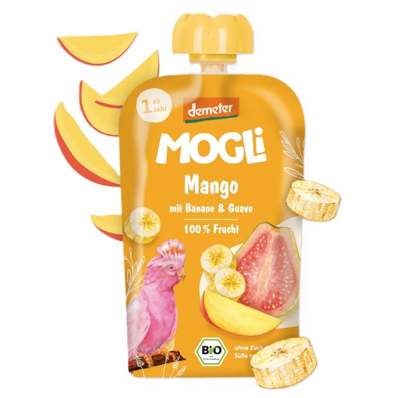 Der MOGLi Quetschie Mango bringt Sonne in den Alltag: Eine köstliche Kombination aus Mango, Banane, Guave und Zitrone sorgt für fruchtig-exotischen Geschmack – ganz ohne Zuckerzusatz. Der praktische Quetschbeutel ist ideal für unterwegs, ob auf dem Spielplatz, im Kindergarten oder beim Familienausflug.