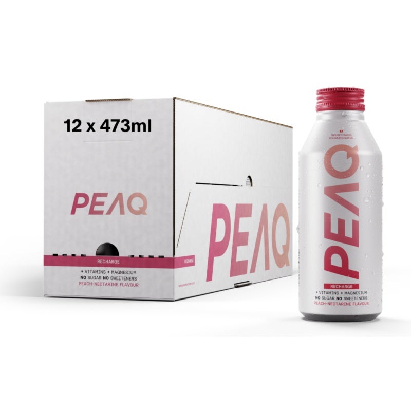 Recharge dich mit dem belebenden Geschmack von PEAQ Peach-Nectarine.Dieses prickelnde Getränk aus reinem Schweizer Bergquellwasser ist angereichert mit essenziellen Vitaminen und Magnesium – für neue Energie und frische Hydration, den ganzen Tag.