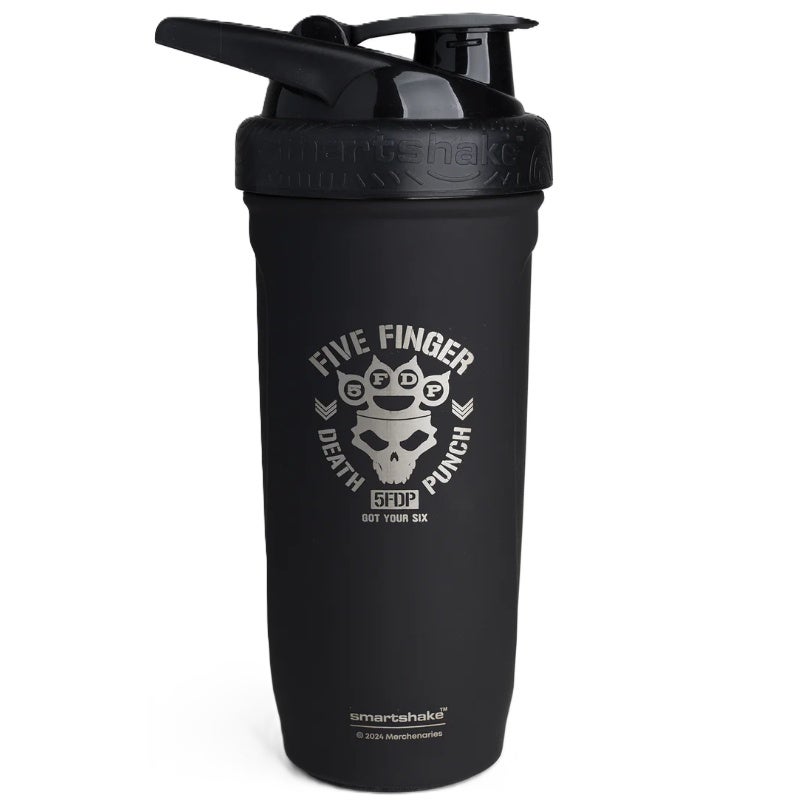 Unsere Shaker-Flasche Five Finger Death Punch Knucklehead kombiniert Funktionalität mit durchdachtem Design: Das clevere Mixnetz ist direkt im Deckel integriert und rastet sicher ein – kein Klappern, kein Verrutschen. So entsteht eine gleichmässige, klumpenfreie Mischung bei jedem Shake. Ob im Fitnessstudio oder unterwegs: Der dichte Verschluss gibt Ihnen das sichere Gefühl, dass nichts ausläuft und alles perfekt vermixt ist.