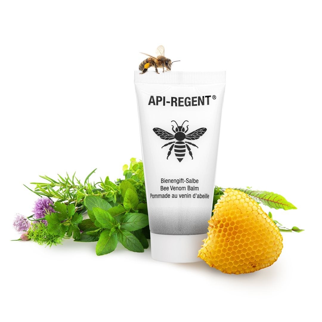 API-REGENT ist eine einzigartige Bienengift-Salbe aus dem Hause Schloßwald-Bienengut, dem einzigen deutschen Hersteller für EU-notifizierte Kosmetikprodukte mit echtem Bienengift. Die sorgfältig abgestimmte Rezeptur kombiniert traditionelle, böhmische Kräuter-Öle mit hochwertigem, natürlichem Bienengift. Alle Öle sind rein natürlich und schonend verarbeitet, während das Bienengift mit einem Melittin-Anteil von 60–70% höchsten Laborstandards entspricht. Die Formel pflegt die Haut intensiv, unterstützt die Regeneration und sorgt für ein angenehm geschmeidiges Hautgefühl ohne unangenehme Wärme oder künstliche Effekte.