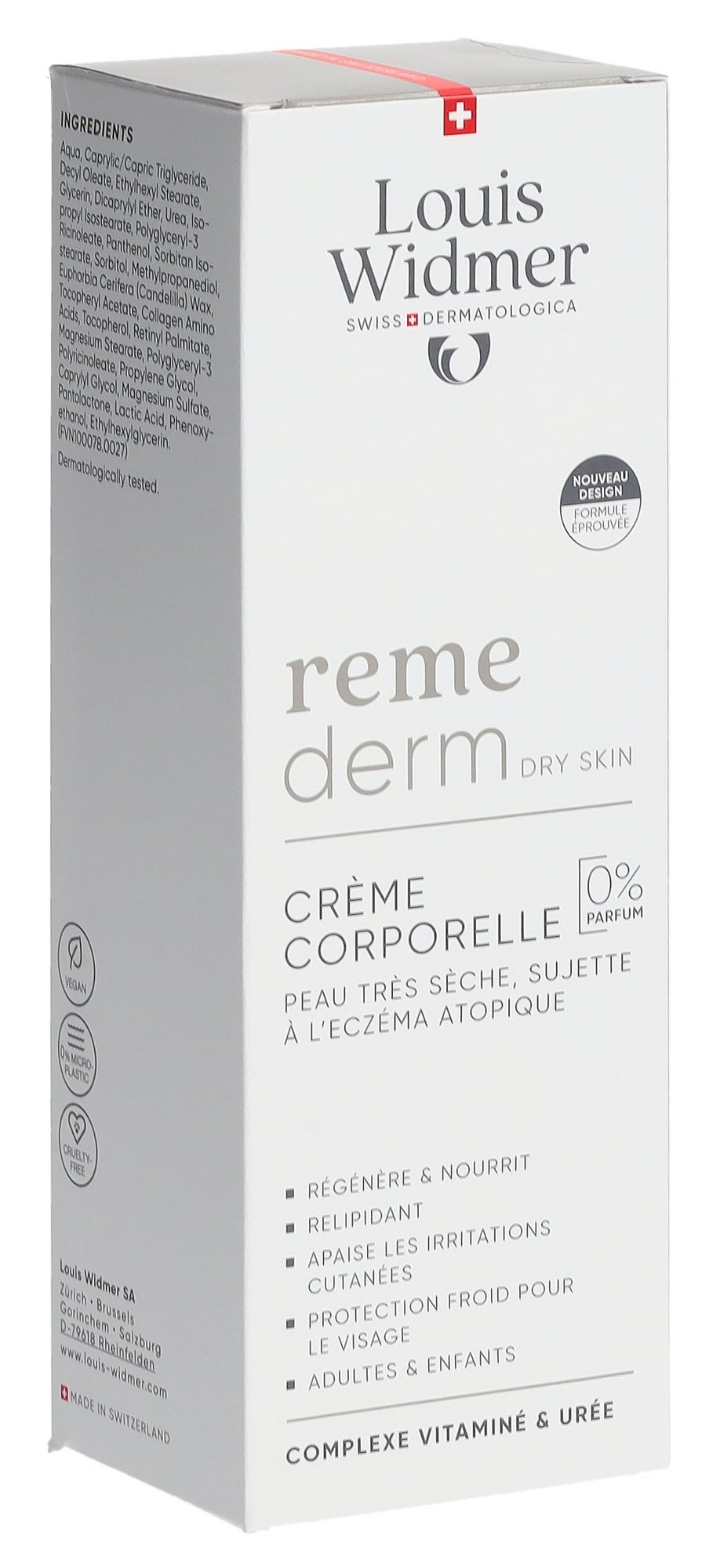 Die Remederm Körpercreme ist ein Spezialpräparat für die Behandlung sehr trockener, gereizter und geröteter Haut. Durch den sehr hohen Gehalt an Wirkstoffen, wie Vitamin A und E, Panthenol, Carbamid und Biostimulatoren, wirkt sie durchfeuchtend, regenerierend und anti-irritativ. Sie stärkt die Barrierefunktion der Haut, normalisiert die Verhornung und bietet einen wirksamen Schutz gegen äussere Einflüsse. Von Dermatologen empfohlen. Ein ideales Präparat zur Vorbeugung und Nachbehandlung von Schwangerschaftsstreifen. Sie ist besonders gut geeignet bei irritierter, geröteter Haut von Kindern.