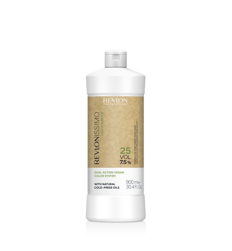 Color Sublime by RevlonissimoTM Creme Oil Developer 25 Vol (7,5%) ist ein spezieller Entwickler, konzipiert und abgestimmt auf die Verwendung mit den Color Sublime by RevlonissimoTM Nuancen.
