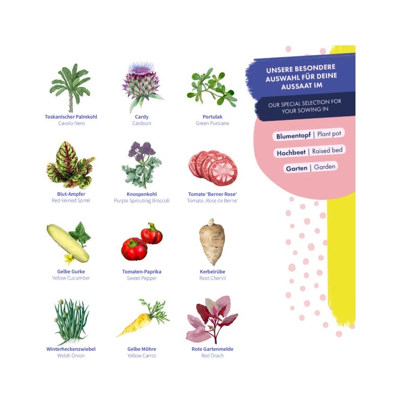 Entdecken Sie den ursprünglichen Geschmack der Natur wieder! Dieses hocheffiziente Set von Magic Garden Seeds bringt 12 traditionsreiche und samenfeste Gemüsesorten direkt in Ihren Garten oder auf Ihren Balkon. Von der robusten Palmerbse bis hin zum farbenfrohen Mangold bietet diese Kollektion eine Auswahl an Klassikern, die nicht nur durch ihre Vielfalt bestechen, sondern zu 100% durch ihr intensives Aroma überzeugen.