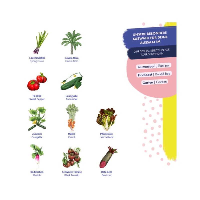 Holen Sie das Maximum aus Ihrem Hochbeet heraus! Dieses hocheffiziente Einsteiger-Set von Magic Garden Seeds enthält 10 sorgfältig ausgewählte, samenfeste Gemüsesorten, die speziell für den platzsparenden und ertragreichen Anbau zusammengestellt wurden. Von knackigen Radieschen bis hin zu aromatischem Pflücksalat – die Zusammenstellung garantiert eine Erfolgsquote von 100% und sorgt für eine kontinuierliche Ernte über die gesamte Saison hinweg.