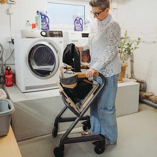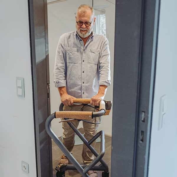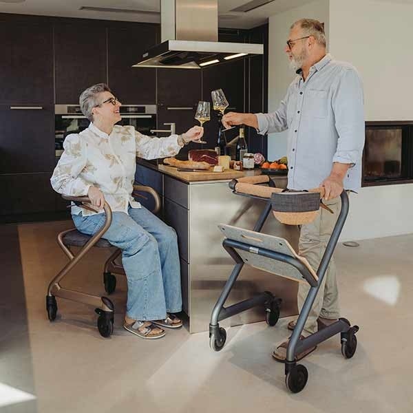 Der stabile Wohnraumrollator ist ein fahrbarer Handlauf und hilft, den Alltag zuhause sicher zu meistern.