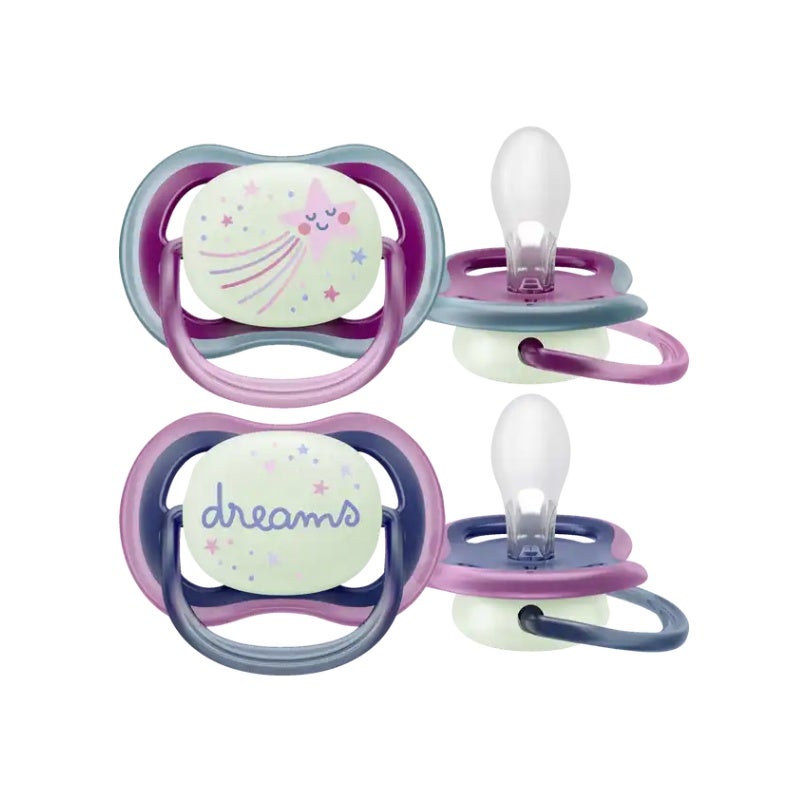 Die besonders grossen Luftlöcher tragen dazu bei, die Haut Ihres Babys weich und trocken zu halten. Nutzen Sie den im Dunkeln leuchtenden Knopf, um den Schnuller unkompliziert und ohne Einschalten des Lichts zu finden. Der Ultra Air-Schnuller ist speziell auf Leichtigkeit und Komfort ausgelegt, einschliesslich seines seidigen Saugers.