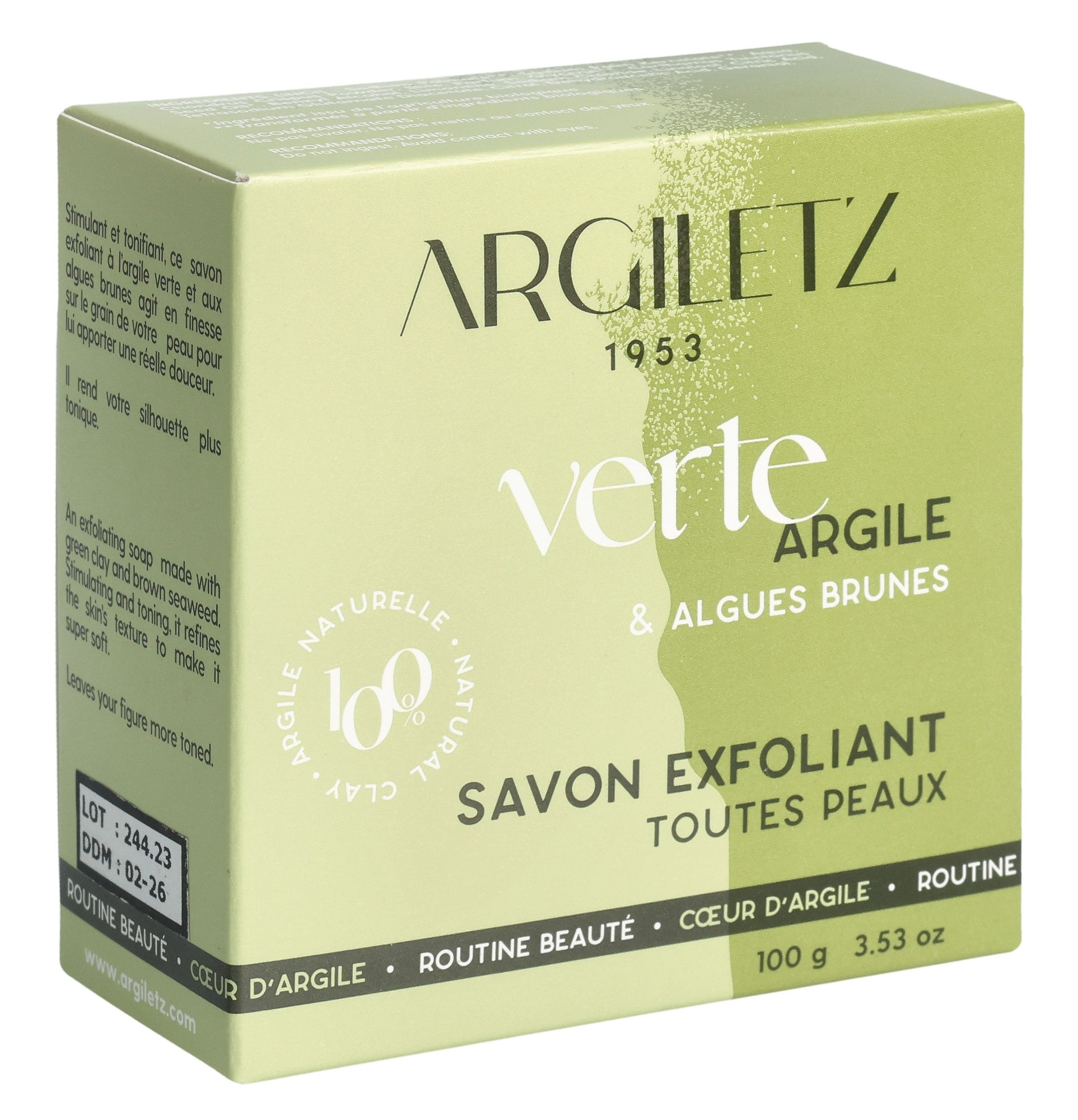 Die Argiletz Peeling-Seife mit grüner Tonerde und braunen Algen bietet eine sanfte, stimulierende Pflege für den ganzen Körper. Sie unterstützt die Haut bei der Durchblutung, strafft die Silhouette und hinterlässt ein geschmeidiges Hautgefühl. Die feine Textur des Peelings, kombiniert mit mineralreicher grüner Tonerde und sorgfältig gemahlenem Argiletz-Puder, sorgt für eine sanfte, aber effektive Hautpflege. Ihre Haut wird zart, glatt und sichtbar vitalisiert.