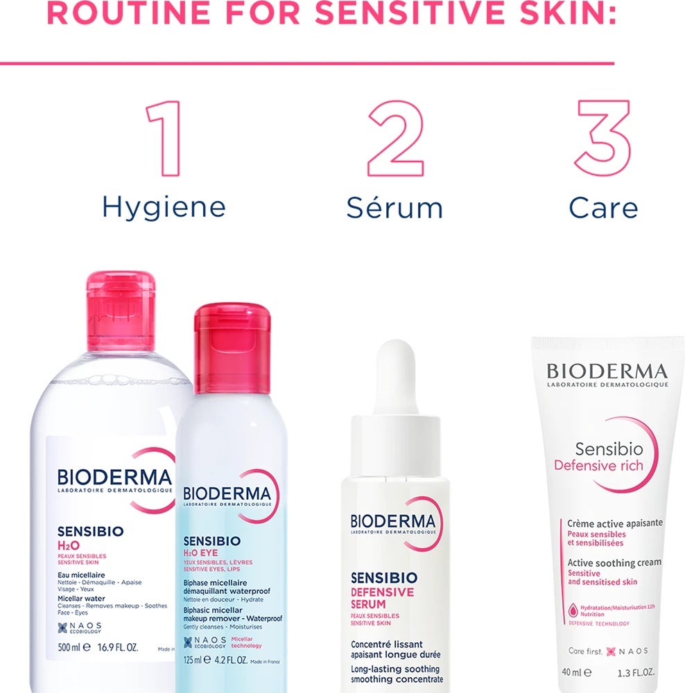 Eine milde 3-in-1-Reinigungslösung speziell für empfindliche Haut. Löst selbst wasserfestes Augen-Make-up und eignet sich auch für gereizte, allergische Haut oder gerötete Stellen.
