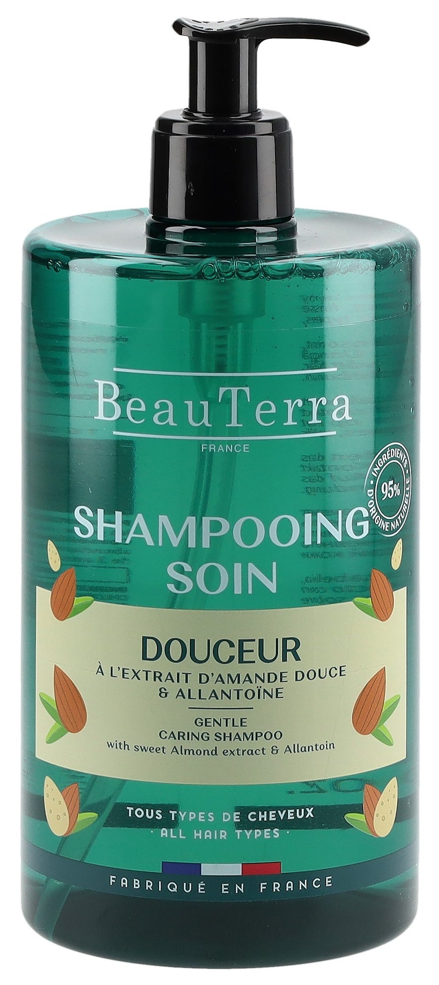 Das BeauTerra Shampoo Soin Douceur ist die ideale Wahl für die sanfte tägliche Haarpflege. Die besonders milde Formel ist mit Süssmandel-Extrakt und Allantoin angereichert, um das Haar schonend zu reinigen und gleichzeitig die Kopfhaut zu beruhigen. Es hilft, das natürliche Gleichgewicht von Haar und Kopfhaut zu bewahren und sorgt für ein angenehmes, gepflegtes Gefühl nach jeder Anwendung.