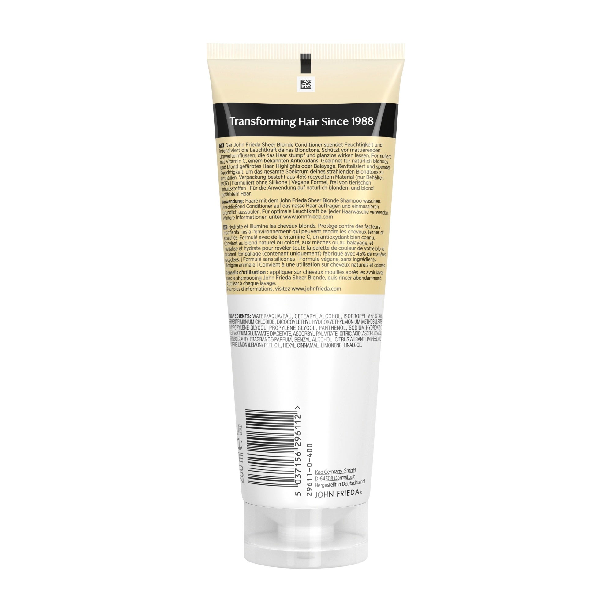 Dieser Conditioner hellt blondes Haar auf, pflegt und schützt* es in wenigen Minuten. Angereichert mit Botanical-Citrus-Complex lässt die stärkende Formel nach und nach glänzende, natürlich wirkende Highlights entstehen – für strahlend sonnengeküsste Haarsträhnen zu jeder Jahreszeit und ein individuell anpassbares Ergebnis.