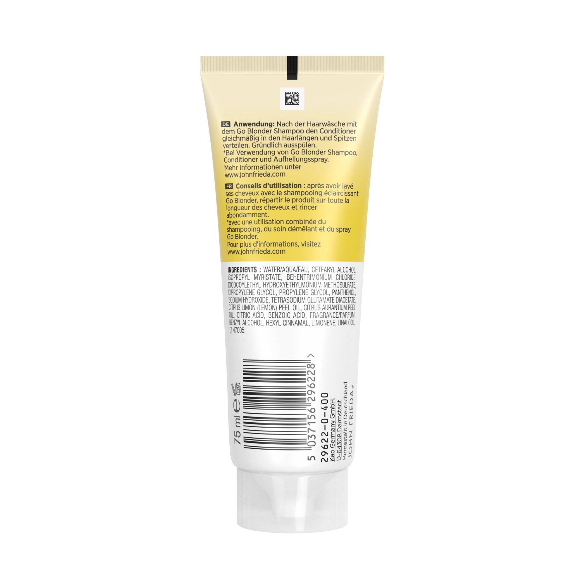 Dieser Conditioner hellt blondes Haar auf, pflegt und schützt* es in wenigen Minuten. Angereichert mit Botanical-Citrus-Complex lässt die stärkende Formel nach und nach glänzende, natürlich wirkende Highlights entstehen – für strahlend sonnengeküsste Haarsträhnen zu jeder Jahreszeit und ein individuell anpassbares Ergebnis.