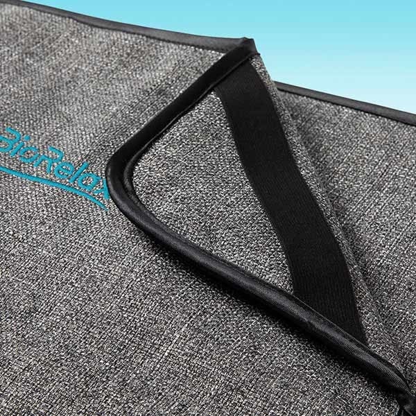 Ein Medizinprodukt muss diverse Tests zur Biokompatibilität durchlaufen und sehr viele Eigenschaften erfüllen. Dabei sollte gleichzeitig auf optimale Pflegeeigenschaften geachtet werden. Naturfasern wie Baumwolle würden Flüssigkeiten zu stark aufnehmen und sind zudem pflegeintensiv und nicht antibakteriell. Daher kommt bei der BioRelax Sitzauflage eine spezielle Kunstfaser zum Einsatz, die angenehm weich und anschmiegsam ist und auf der man nicht sonderlich schwitzt. Bei allen Materialien vom Oberstoff bis Kleinsche Felder, Garn, Innenvlies und Label wird nur nach höchstem Qualitäts-Standard und EU-Normen gearbeitet. Für ein schadstofffreies Medizinprodukt, wie man es sich wünscht.