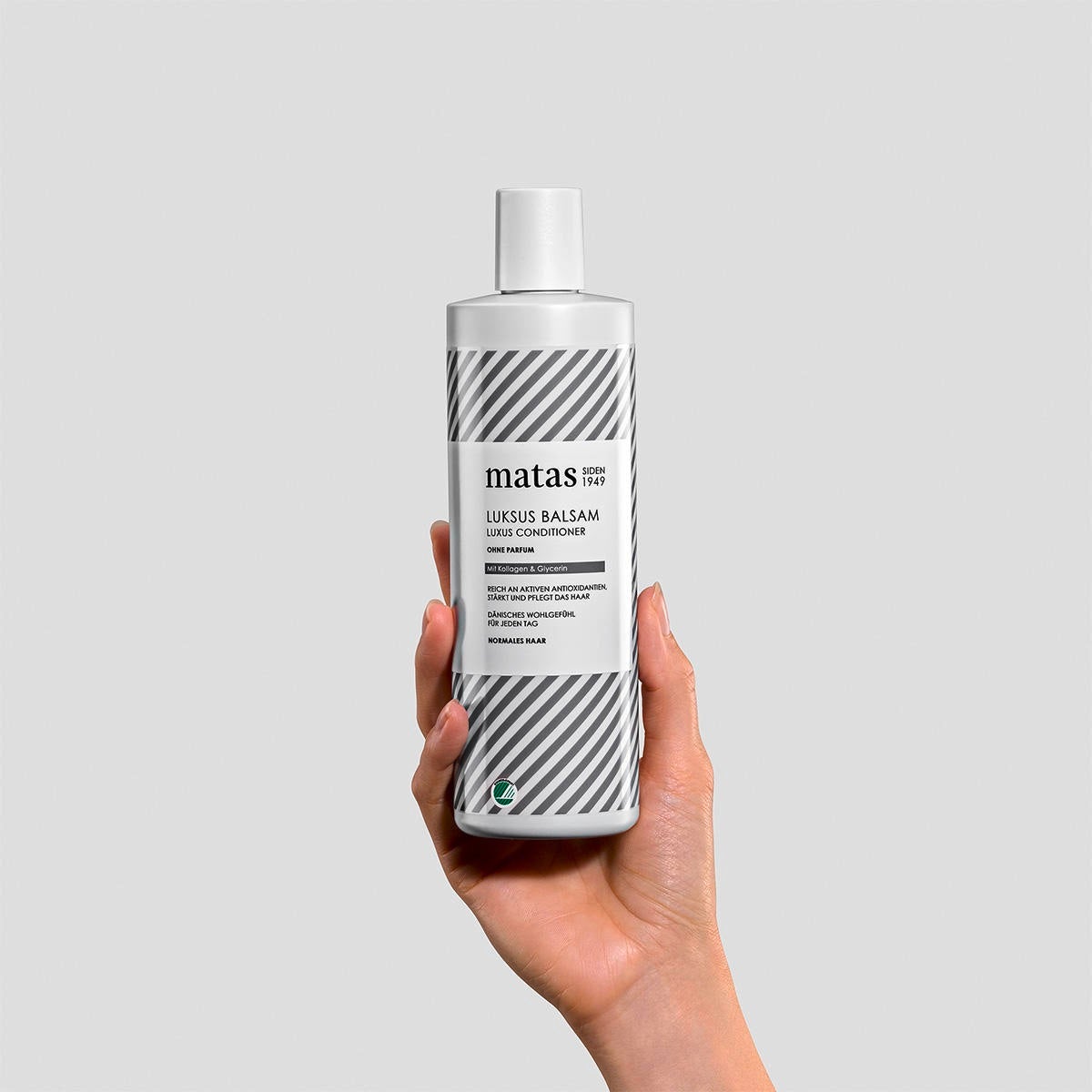 Geschmeidiges Haar dank diesem cremigen, intensiv pflegendem Conditioner - mit stärkendem, antioxidativ wirkendem Kollagen. Matas Luxus Conditioner ohne Parfüm ist ein schöner cremiger Conditioner, den Sie jeden Tag auftragen können. Der Conditioner sorgt für intensive Pflege, damit Ihr Haar weich und leicht kämmbar wird. Der Gehalt an antioxidativem Kollagen stärkt und pflegt das Haar und hilft gleichzeitig, die natürliche Barriere des Haares zu schützen.