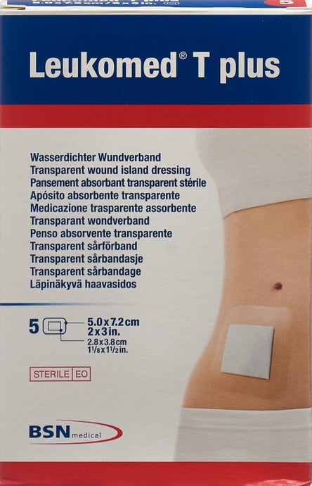 Leukomed® T plus bietet nicht nur dem Anwender eine Vielzahl an Möglichkeiten, auch der Patient profitiert von den wasser- und keimdichten Eigenschaften des sterilen Wundverbandes. Dieser postoperative Folienverband mit seiner stark saugfähigen Wundauflage ermöglicht es dem Patienten, seine gewohnten Alltagsaktivitäten frühzeitig wieder aufzunehmen. Durch die hohe Wasserdampfdurchlässigkeit der Folie werden Feuchtigkeitsansammlungen verhindert und das Risiko von Mazerationen reduziert. Die hochflexible, wasserdichte Folie bietet einen sehr hohen Tragekomfort und sitzt auch an Gelenken und Extremitäten wie eine zweite Haut. Leukomed® T plus ist steril und bietet einen zuverlässigen Schutz gegen Bakterien und Keime. Die abgerundeten Ecken gewährleisten eine sichere Fixierung und verhindern ungewolltes Aufrollen. Das intuitive Applikationssystem mit dem roten Streifen ermöglicht eine unkomplizierte, schnelle Anwendung, auch wenn Handschuhe getragen werden. Leukomed® T plus besteht aus einer extradünnen Polyurethanfolie, vollflächig beschichtet mit einem Polyacrylatkleber. Die Wundauflage besteht aus einem Viskosevlies, beschichtet mit Polypropylen.