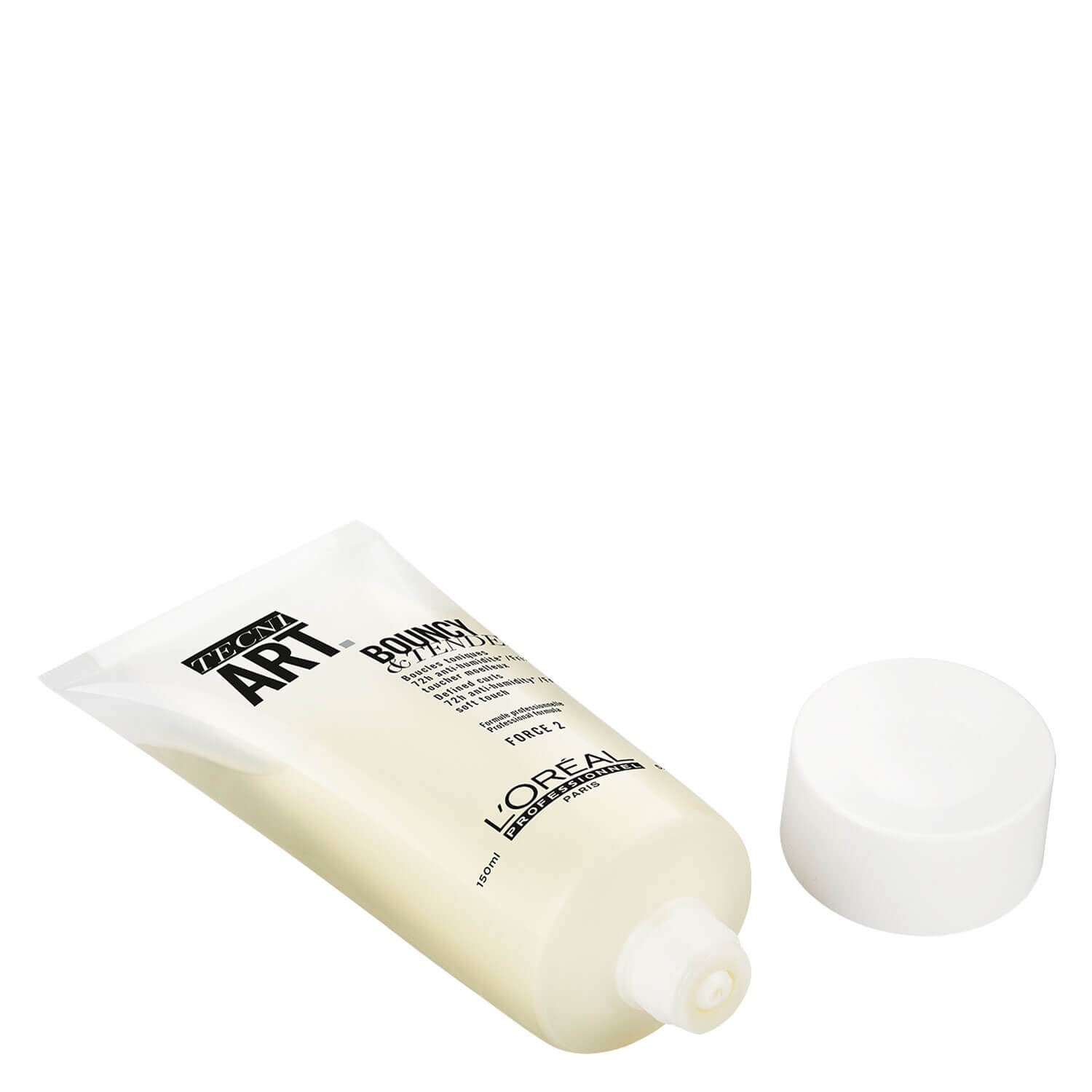 L'Oréal Professionnel Tecni.ART Bouncy & Tender definiert Locken und verleiht ein geschmeidiges Haargefühl. Die Gel-Creme wirkt 72 Stunden lang aktiv gegen Frizz. Die professionelle Formel des Duos, der Locken definierenden Creme und dem Intra-CylaneTM Gel schützt ausserdem vor Luftfeuchtigkeit. Mit Bouncy und Tender können flexible und doch definierte Looks erschaffen werden.