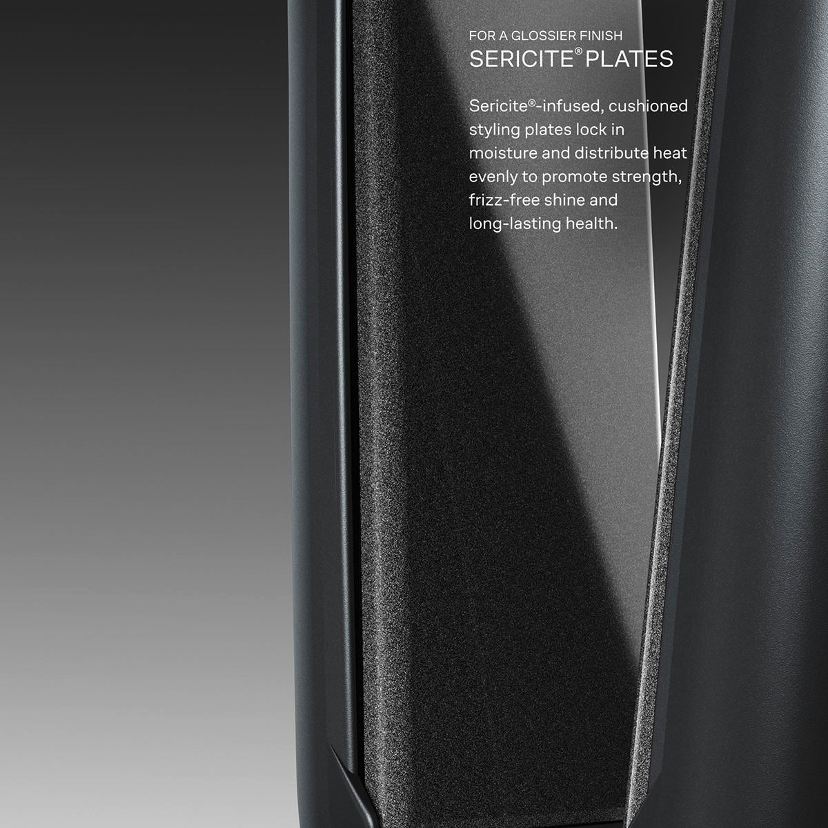 - Für ein glänzenderes Finish – Sericite®-Platten: Mit Sericite® angereicherte, gepolsterte Stylingplatten schließen Feuchtigkeit ein und verteilen die Hitze gleichmäßig, um Stärke, glanzvolles, frizzfreies Haar und langfristige Gesundheit zu fördern.