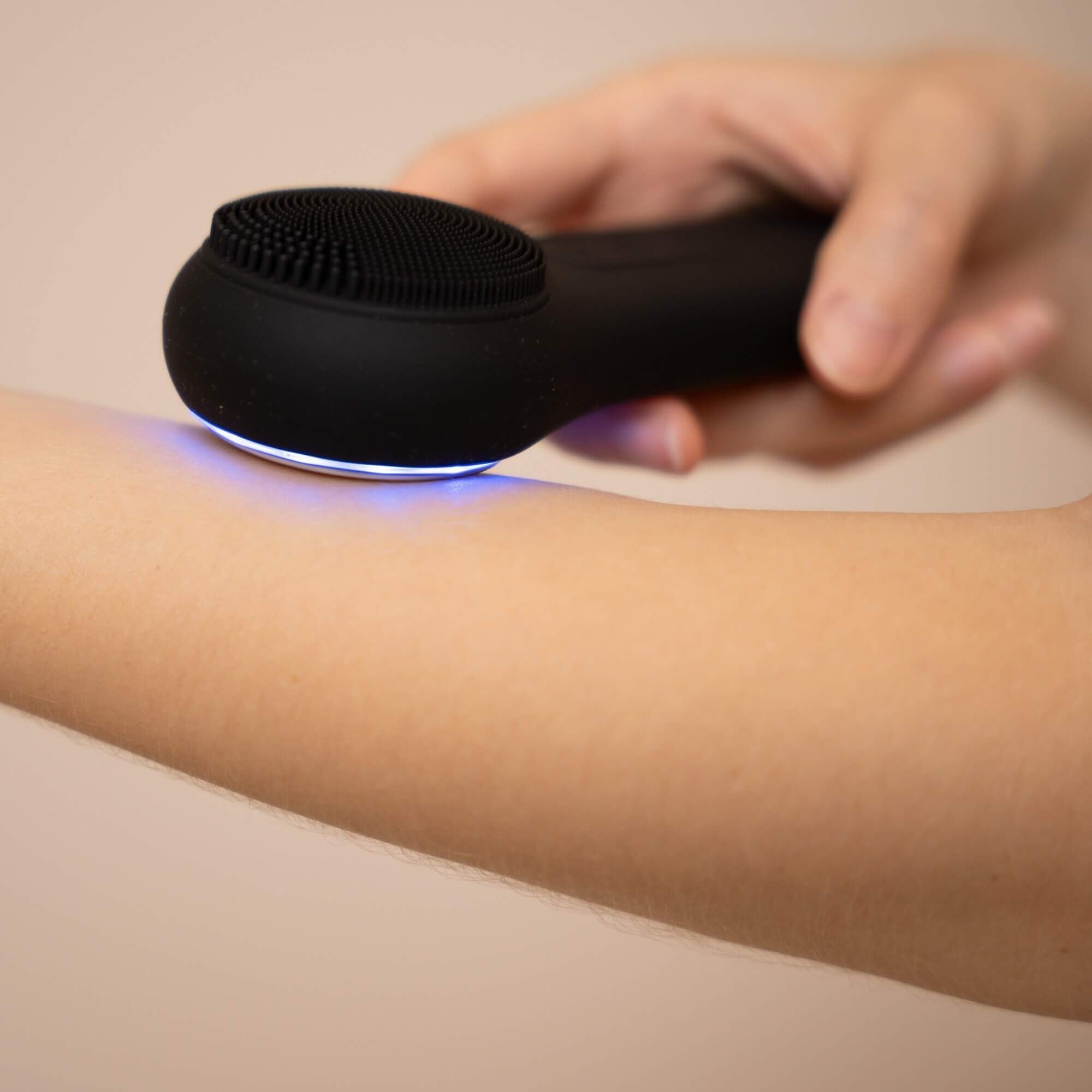 Die Sonic-Vibrationen des VBEAUTY  Bürstenkopfs reinigen die Haut gründlich und bereiten sie optimal für weitere Pflegeschritte vor. Die Kryotherapie mit blauem Licht beruhigt die Haut und reduziert Entzündungen, während die Thermotherapie mit rotem Licht die Haut revitalisiert und die Kollagenproduktion fördert. Diese kombinierten Technologien bieten eine ganzheitliche Pflege, die die Haut strahlen lässt und für ein verbessertes Hautbild sorgt. Sie eignet sich für alle Hauttypen.