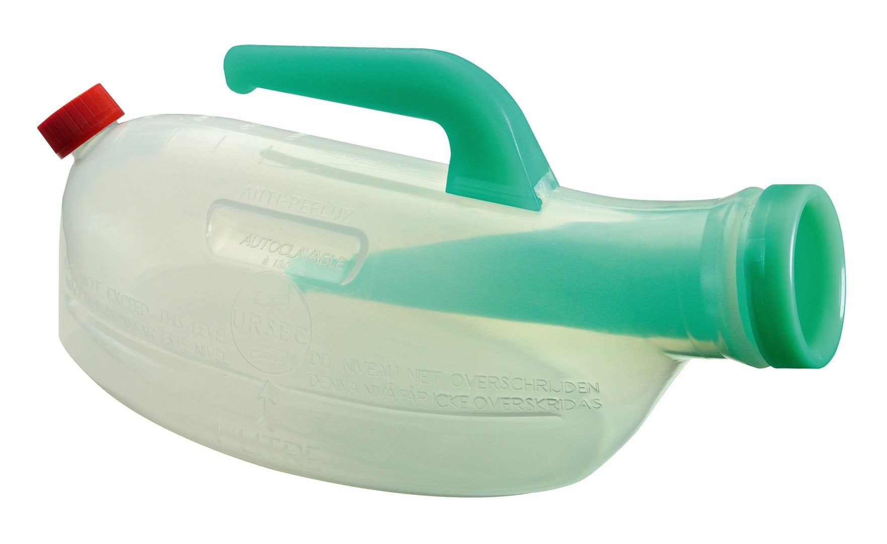 Der phosphorisierende Griff der Ursec-Urinflasche leuchtet im Dunkeln, sodass sie auch nachts leicht zu finden und zu verwenden ist. Das robuste, graduiert markierte Gefäss mit einem Volumen von ca. 1 Liter ermöglicht eine einfache Kontrolle der Urinmenge. Damit vereint die Urinflasche Funktionalität, Komfort und Sicherheit im täglichen Gebrauch – sowohl zu Hause als auch in Pflegeeinrichtungen.