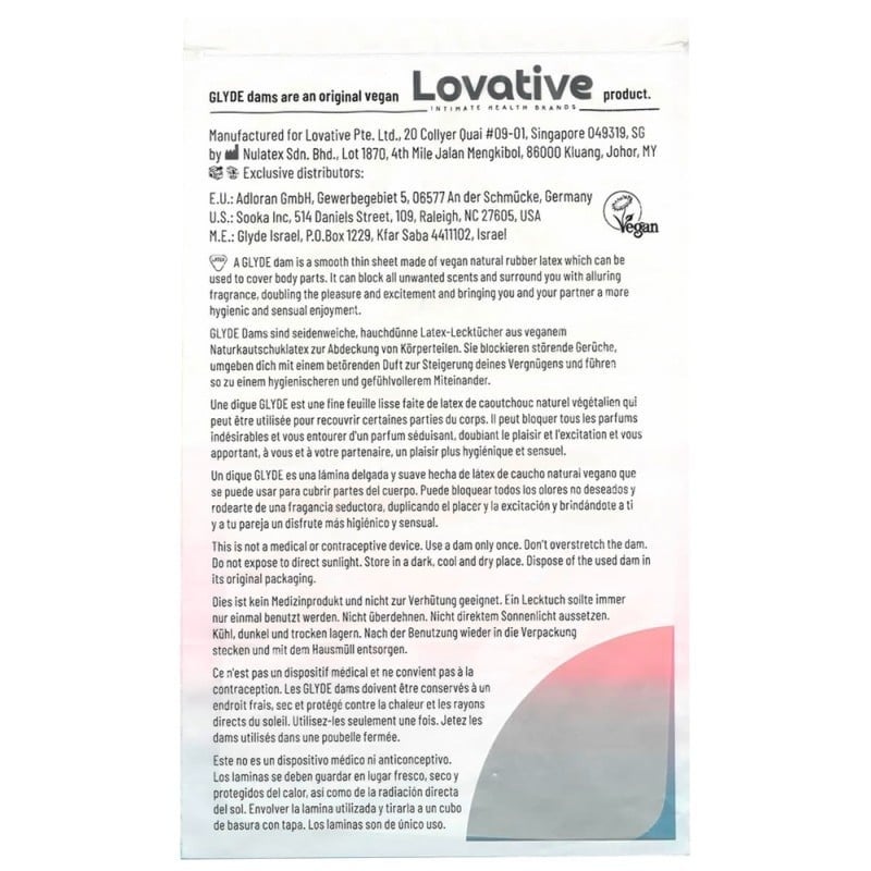 Sinnlicher Genuss beim Oralsex – mit Sicherheit! Die GLYDE Dams VANILLA bieten zuverlässigen, hygienischen Schutz und hohen Komfort beim Oralverkehr. Die veganen, cremefarbenen Lecktücher aus Naturkautschuklatex sind hauchdünn und seidenweich für ein gefühlsechtes, komfortables Erlebnis. Mit einer großzügigen Größe von 25 x 15 cm bieten die Schutztücher eine umfassende Abdeckung beim Cunnilingus und Rimming. Das dezente Vanille-Aroma unterstreicht dabei mit warmer sinnlicher Note den ganz besonderen Moment. Für maximale Hygiene sind die Lecktücher einzeln verpackt und in der praktischen, runden Box schnell einsatzbereit. 4 Stück.