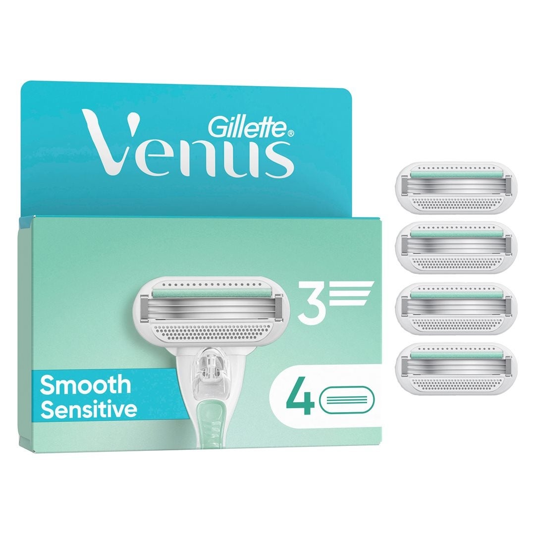 Die Gillette Venus Smooth Sensitive Ersatzklingen wurden speziell für die Bedürfnisse empfindlicher Haut entwickelt. Mit 3 präzisen Klingen und einem pflegenden Gleitstreifen mit Aloe Vera ermöglichen sie eine besonders sanfte und gründliche Rasur – ganz ohne Reizungen. Die Klingen passen auf alle Venus-Rasierergriffe (ausgenommen Simply Venus) und lassen sich einfach austauschen. Ideal für eine schonende Haarentfernung, selbst bei sensibler Haut.