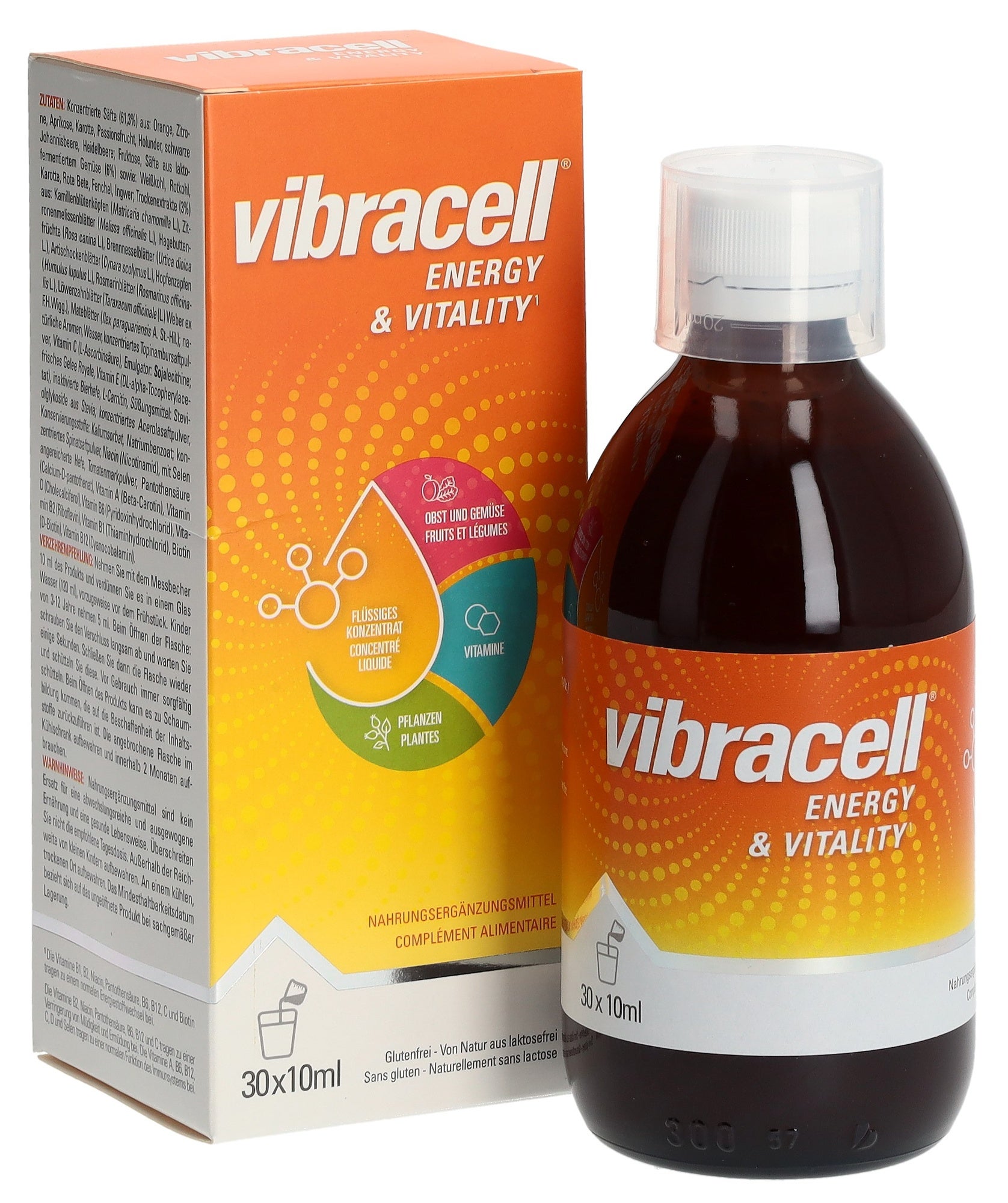 Vibracell ist ein natürliches Multivitaminpräparat auf Basis von kaltgepressten Säften aus sorgfältig ausgewählten Früchten, Gemüsesorten und Pflanzen. Diese stammen zudem größtenteils aus kontrolliert biologischem Anbau. Vitamine A, B6, B12, C, D, Selen, Folsäure, Gelée Royale, L-Carnitin, Coenzym Q10 usw. sind ebenfalls enthalten. Unter jeder Flasche befindet sich eine biophotonische Platte, die die Schwingungs- oder Oszillationsenergie von Vibracell verstärkt.