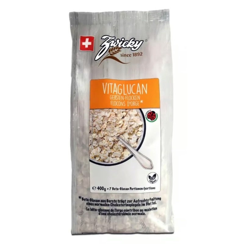 Die VITAGLUCAN® Zwicky IP Suisse Gerstenflocken sind eine hochwertige, vegane und naturbelassene Ballaststoffquelle – ideal für alle, die ihren Cholesterinspiegel auf natürliche Weise unterstützen möchten. Die Schweizer Gerste enthält von Natur aus einen besonders hohen Anteil an Beta-Glucan, und genau diesen Vorteil bieten die VITAGLUCAN®-Flocken in ihrer reinsten Form: kein zugesetzter Zucker, keine unnötigen Zusatzstoffe, nur reine, nährstoffreiche Gerstenflocken. Beta-Glucan aus Gerste trägt wissenschaftlich erwiesen dazu bei, einen normalen Cholesterinspiegel im Blut aufrechtzuerhalten. Im Verdauungssystem bildet der lösliche Ballaststoff ein Gel, das überschüssiges „schlechtes“ LDL-Cholesterin bindet und aus dem Körper transportiert – ohne das „gute“ HDL-Cholesterin zu beeinträchtigen. Die VITAGLUCAN®-Flocken schmecken mild, natürlich und lassen sich vielseitig in den Alltag integrieren – vom Frühstück bis zur warmen Küche.