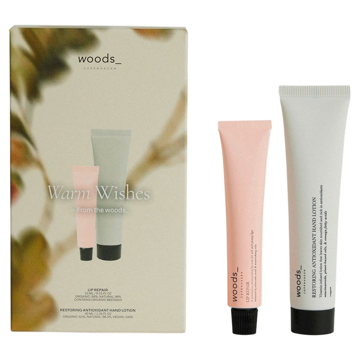 Verwöhnen Sie einen besonderen Menschen in dieser Weihnachtszeit mit einem Geschenk, das trockene Hände und rissige Lippen verhindert. Reich an aktiven und natürlichen Inhaltsstoffen, pflegt und macht es die Haut effektiv geschmeidig – perfekt, um sie den ganzen Winter über zu schützen und mit Feuchtigkeit zu versorgen. Das ideale Duo für unterwegs. Diese feuchtigkeitsspendende Handlotion und reparierende Lippenpflege hält Hände und Lippen den ganzen Tag über weich und geschützt – jederzeit und überall. WARM WISHES FROM THE WOODS_GIFT SET beinhaltet: