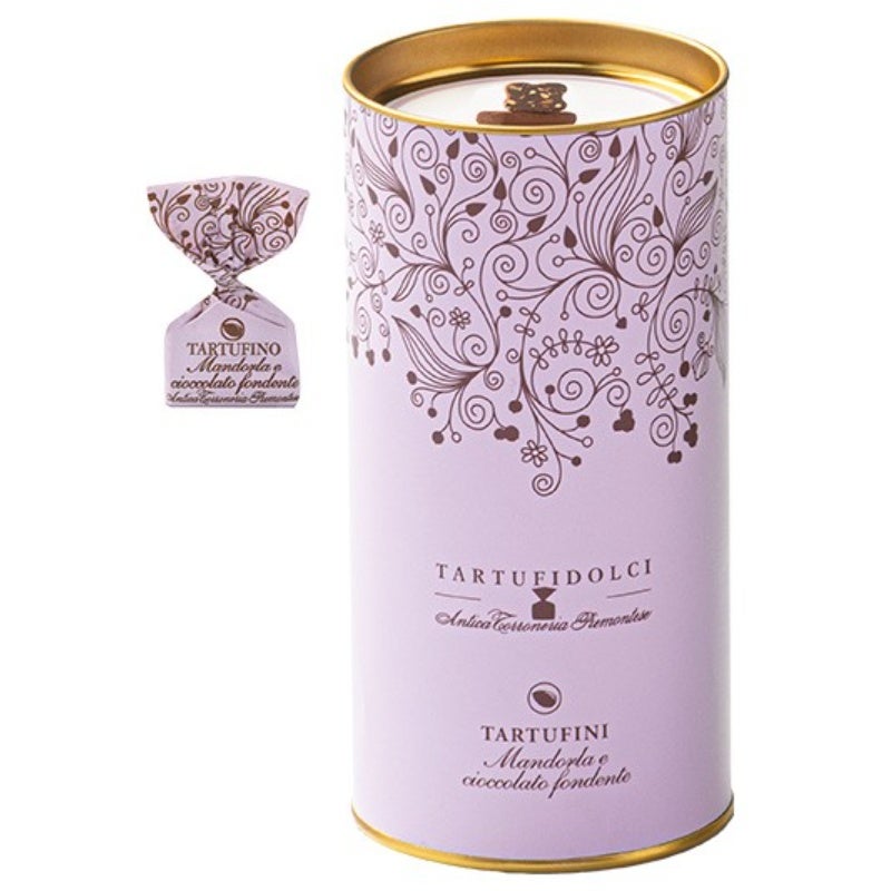 Zartbitter-Mandel-Tartufi 160 g - Feinste Pralinen, italienische Schokoladentrüffel in Geschenkdose, fein-herb & edel, perfekt zu Kaffee