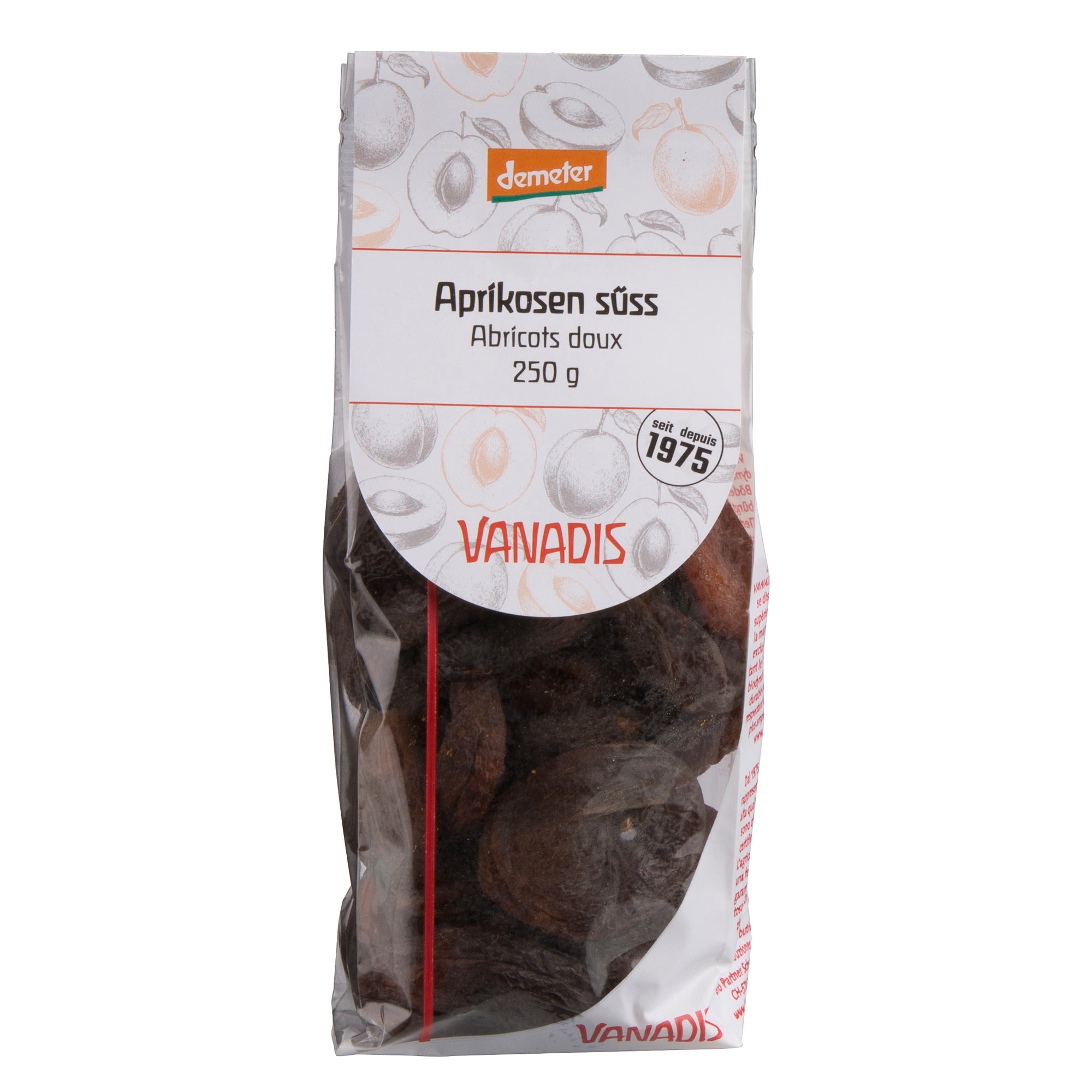 Apricots doux*** séché. Légende: * Biologique, ** Bourgeon, *** Demeter.
