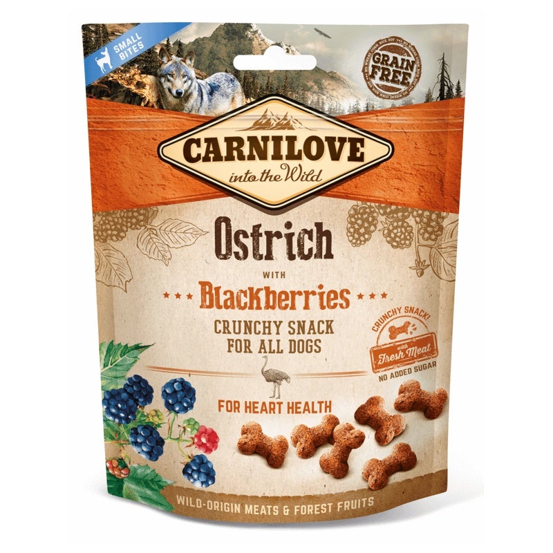 grasgefütterter Strauß 50 % (getrockneter Strauß 33 %, frischer Strauß 17 %), Kürbis 15 %, gelbe Erbsen 8 %, getrocknete Äpfel 5 %, Karotten 5 %, Kichererbsen 4 %, Brombeeren 4 %, Hühnerfett (konserviert mit Tocopherolen) 4 %, Leinsaat 2 %, getrockneter Spinat 2 %, Leinöl 1 %.
