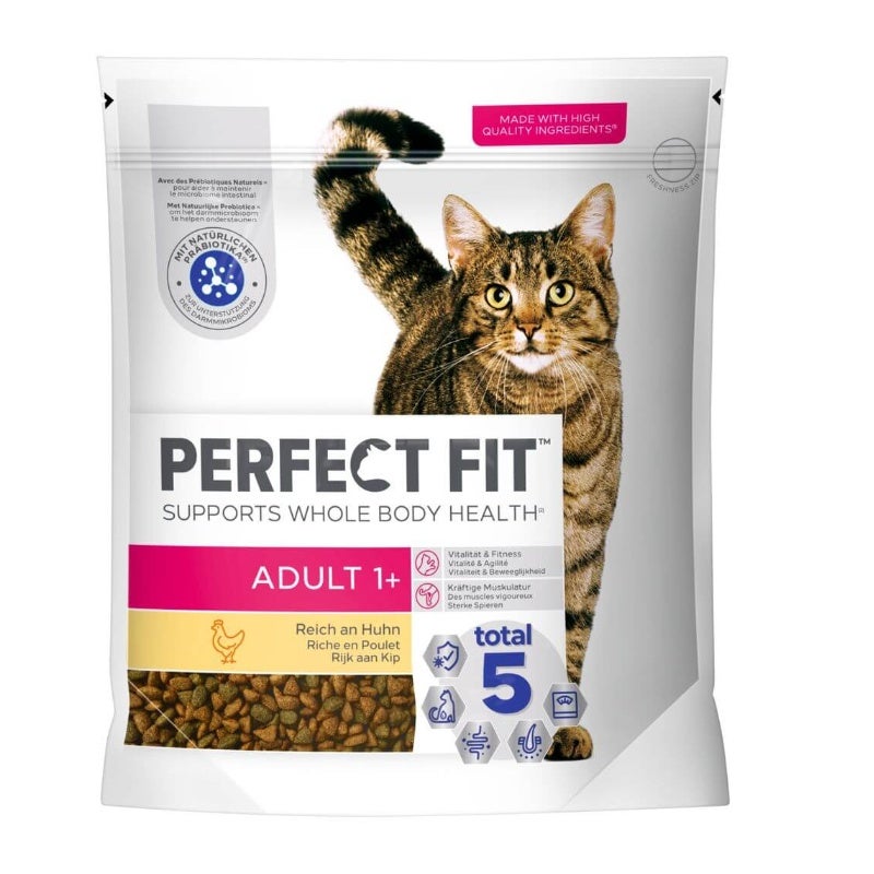 Fleisch und tierische Nebenerzeugnisse (u.a. Huhn 14%), Weizen, Mais, pflanzliche Eiweissextrakte, Öle und Fette, pflanzliche Nebenerzeugnisse, Mineralstoffe, Hefen (u.a. natürliche Bierhefe 0.2%).