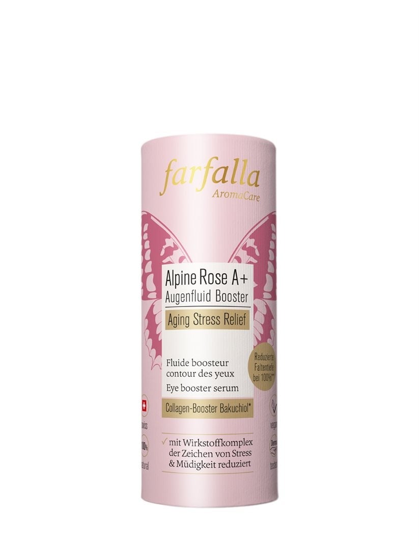 Le complexe innovant de substances actives de Rosa Damascena active les récepteurs olfactifs de la peau, ce qui réduit la transmission des substances messagères du stress et protège la peau. Le bakuchiol, alternative végétale à la vitamine A, agit comme un booster de collagène et raffermit le contour des yeux. Un extrait de rose alpine protège la peau de loxydation et lui redonne de léclat. Lhuile de rose de haute qualité Wilda en outre un effet antioxydant sur les peaux stressées. Leffet est renforcé par la boule à rouler en quartz rose : un cristal utilisé depuis des siècles pour augmenter le bien-être, connu pour soulager le stress et la fatigue et pour donner des impulsions positives. Une fois le produit utilisé, la boule de quartz rose peut être facilement expulsée à laide dun objet long et continuer à être utilisée comme pierre énergétique. Un véritable concentré dénergie pour un contour des yeux reposé et visiblement rajeuni.