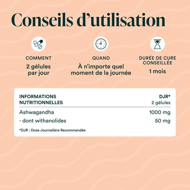 Ashwagandha-Wurzelextrakt* (Withania somnifera (L.) Dunal), standardisiert auf 5 % Withanolide (KSM-66®), pflanzliche Kapsel (Überzugsmittel: Hydroxypropylmethylcellulose). *Zutat aus biologischem Anbau.