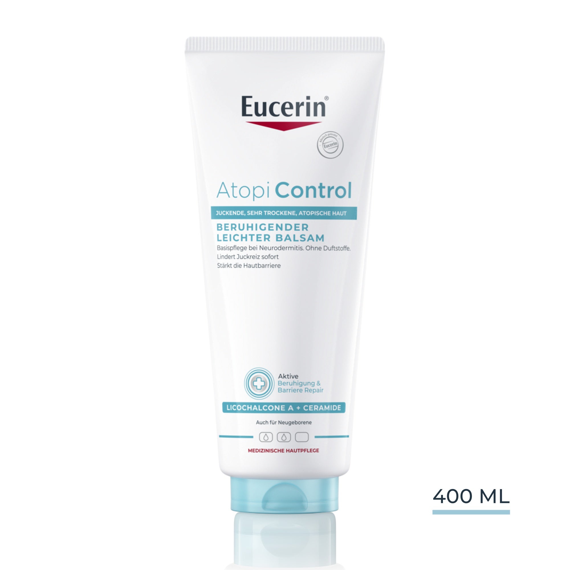 Le baume léger apaisant Eucerin AtopiControl est un soin rapidement absorbé pour les peaux très sèches, irritées et atopiques. La formule associe des actifs de soin végétaux avec de la licochalcone A apaisante pour la peau, des lipides naturels tels que les acides gras oméga issus de lhuile de pépins de raisin et de graines de soja Nachtke rz, du beurre de karité nourrissant ainsi que des céramides qui renforcent la barrière cutanée et remplacent les lipides perdus. La lotion corporelle sans microplastique hydrate intensément la peau, lassouplit et apaise sensiblement les démangeaisons, ce qui améliore la qualité du sommeil. besser.