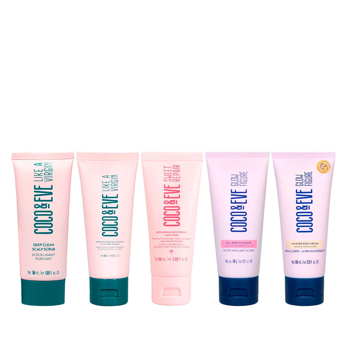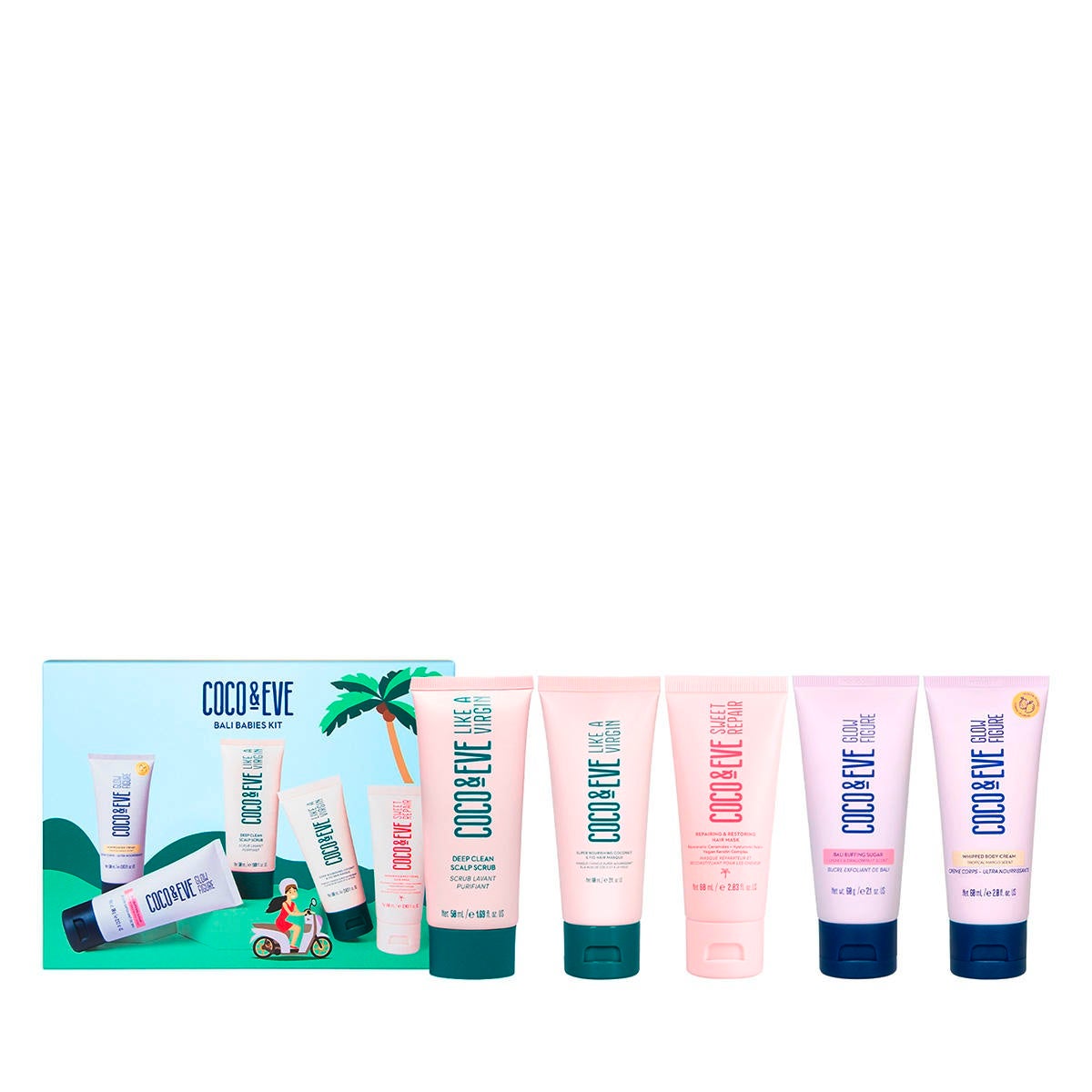 SUPER NOURISHING COCONUT & FIG HAIR MASQUE: Aqua/Water/Eau, Cetearyl Alcohol, Cocos Nucifera Fruit Extract/Cocos Nucifera (Coconut) Fruit Extract, Dimethicone, Behentrimonium Chloride, Glycerin, Parfum/Fragrance/Perfume, Ficus Carica (Fig) Fruit Extract/Ficus Carica Fruit Extract, Argania Spinosa Kernel Oil, Shea Butter Ethyl Esters, Caryocar Brasiliense Fruit Oil, Ricinus Communis (Castor) Seed Oil/Ricinus Communis Seed Oil, Hydrolyzed Linseed Seed, Phenoxyethanol, Caramel, Citric Acid, Cetrimonium Chloride, Potassium Sorbate, Ethylhexylglycerin, Selaginella Lepidophylla Extract, Saccharomyces/Silicon Ferment, Saccharomycyes/Iron Ferment, Saccharomyces/Magnesium Ferment, Saccharomyces/Copper Ferment, Saccharomyces/Zinc Ferment, Tocopherol, Lactobacillus Ferment, Coumarin, Limonene, Linalool, Benzyl Salicylate. DEEP CLEAN SCALP SCRUB: Aqua/Water/Eau, Alcohol Denat., Cocos Nucifera (Coconut) Oil/Cocos Nucifera Oil, Stearyl Alcohol, Polyquaternium-37, Mentha Piperita (Peppermint) Oil/Mentha Piperita Oil, Menthyl Ethylamido Oxalate, Distearoylethyl Hydroxyethylmonium Methosulfate, Pumice, Bambusa Arundinacea Stem Powder, Melaleuca Alternifolia (Tea Tree) Leaf Oil/Melaleuca Alternifolia Leaf Oil, Piroctone Olamine, Polyquaternium-11, Pentylene Glycol, Glycerin, Ceteareth-20, Mannitol, Cetearyl Alcohol, Chlorphenesin, Citrus Limon (Lemon) Fruit Extract/Citrus Limon Fruit Extract, Cocos Nucifera (Coconut) Shell Powder/Cocos Nucifera Shell Powder, Microcrystalline Cellulose, Ananas Sativus (Pineapple) Fruit Extract/Ananas Sativus Fruit Extract, Passiflora Edulis Fruit Extract, Vitis Vinifera (Grape) Fruit Extract/Vitis Vinifera Fruit Extract, Salicylic Acid, Coffea Arabica (Coffee) Seed Extract/Coffea Arabica Seed Extract, Coffea Robusta Seed Extract, Triticum Vulgare (Wheat) Bran Extract/Triticum Vulgare Bran Extract, Phenoxyethanol, Charcoal Powder, 1,2-Hexanediol, Caprylyl Glycol, Sorbic Acid, Sodium Benzoate, Algin, Potassium Sorbate, Ethylhexylglycerin, Sodium Hydroxide, Sodium Bisulfite, Benzyl Alcohol, Limonene, FD&C Yellow No. 5/CI 19140, FD&C Blue No. 1/CI 42090. REPAIRING & RESTORING HAIR MASK: Aqua/Water/Eau, Cetearyl Alcohol, Cetrimonium Chloride, Ananas Sativus Fruit Extract/Ananas Sativus (Pineapple) Fruit Extract, Psidium Guajava Fruit Extract, Cocos Nucifera Fruit Extract/Cocos Nucifera (Coconut) Fruit Extract, Musa Sapientum Fruit Extract/Musa Sapientum (Banana) Fruit Extract, Hydrolyzed Pea Protein, Pseudozyma Epicola/Argania Spinosa Kernel Oil/Camellia Japonica Seed Oil/Camellia Sinensis Seed Oil/Sunflower Seed Oil/Sweet Almond Oil Ferment Extract, Ficus Carica Fruit Extract/Ficus Carica (Fig) Fruit Extract, Nephelium Lappaceum Branch/Fruit/Leaf Extract, Hydrolyzed Rice Protein, Persea Gratissima Oil/Persea Gratissima (Avocado) Oil, Hydrolyzed Hyaluronic Acid, Hydrolyzed Hemp Seed Extract, Sodium Hyaluronate, Behentrimonium Chloride, Ethylhexyl Palmitate, Guar Hydroxypropyltrimonium Chloride, Glyceryl Stearate, Dipalmitoylethyl Hydroxyethylmonium Methosulfate, Potassium Sorbate, Behenyl/Stearyl Aminopropanediol Esters, Propylene Glycol, Quaternium-80, Glycerin, Citric Acid, Tocopherol, Parfum/Fragrance/Perfume, D&C Red No. 33 / CI 17200, FD&C Yellow No. 5 / CI 19140, Benzyl Alcohol, Hexyl Cinnamal, Benzoic Acid, Tetrasodium Glutamate Diacetate, Sorbic Acid, Coumarin. BALI BUFFING SUGAR: Prunus Amygdalus Dulcis (Sweet Almond) Oil/Prunus Amygdalus Dulcis Oil, Sodium Chloride, Cocos Nucifera (Coconut) Oil/Cocos Nucifera Oil, Sucrose, Silica Dimethyl Silylate, Coconut Flower Sugar, Glyceryl Stearate SE, Polysorbate 20, Laureth-7 Citrate, Cocos Nucifera (Coconut) Shell Powder/Cocos Nucifera Shell Powder, Pumice, Parfum/Fragrance/Perfume, Tocopherol, Ricinus Communis (Castor) Seed Oil/Ricinus Communis Seed Oil, Octadecyl Di-t-Butyl-4-Hydroxyhydrocinnamate, Pentaerythrityl Tetra-Di-t-Butyl Hydroxyhydrocinnamate, Aqua/Water/Eau, Citrus Medica Limonum (Lemon) Peel Extract/Citrus Limon (Lemon) Peel Extract/Citrus Limon Peel extract, CI 15850 / D&C Red No. 6, Hexyl Cinnamal, Linalool, Citronellol. WHIPPED BODY CREAM (TROPICAL MANGO SCENT): Aqua/Water/Eau, Cocos Nucifera (Coconut) Oil/Cocos Nucifera Oil, Cetearyl Alcohol, Isopropyl Myristate, Glyceryl Stearate, Propanediol, Cetearyl Glucoside, Dicaprylyl Ether, Dicaprylyl Carbonate, Glycerin, Coffea Canephora Seed Extract, Lotus Maritimus Flower/Leaf Extract, Carica Papaya (Papaya) Fruit Extract/Carica Papaya Fruit Extract, Cocos Nucifera (Coconut) Fruit Extract/Cocos Nucifera Fruit Extract, Ficus Carica (Fig) Fruit Extract/Ficus Carica Fruit Extract, Garcinia Mangostana Fruit Extract, Mangifera Indica (Mango) Fruit Extract/Mangifera Indica Fruit Extract, Theobroma Cacao (Cocoa) Seed Extract/Theobroma Cacao Seed Extract, Tocopheryl Acetate, Sodium Polyacrylate, Sodium Stearoyl Glutamate, Xanthan Gum, Caramel, Hydroxyacetophenone, Chlorphenesin, Benzyl Alcohol, Sodium Benzoate, Potassium Sorbate, Parfum/Fragrance, Citric Acid.