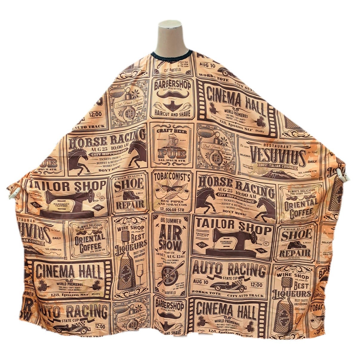 Cape de coupe Barber 100% hydrofuge, tissée en polyester, imprimée de motifs de loisirs masculins au look vintage.