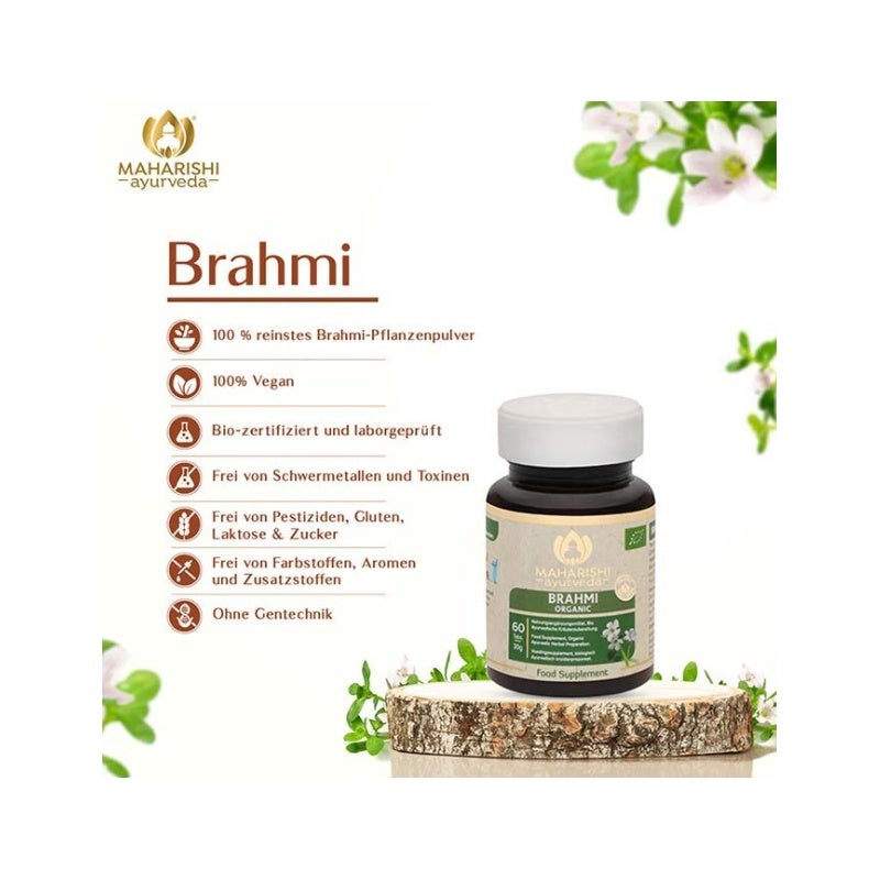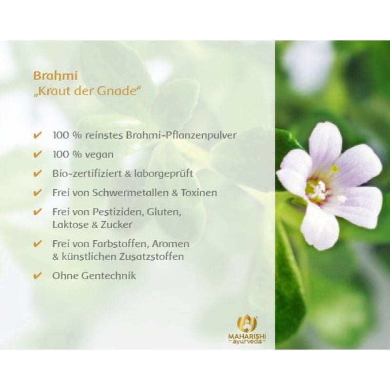 Die empfohlene Tagesverzehrsmenge (2 Tabletten) enthält folgende Zutaten: Bacopa monnieri (Brahmi)* 950 mg, Stärke Tapioka*