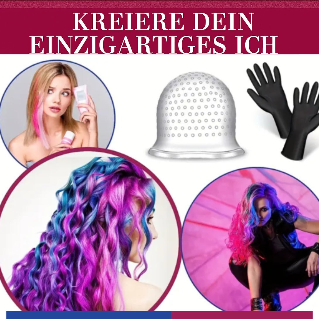 Comprend la cagoule à mèches, le crochet et les gants indispensables pour une coloration sûre et efficace.